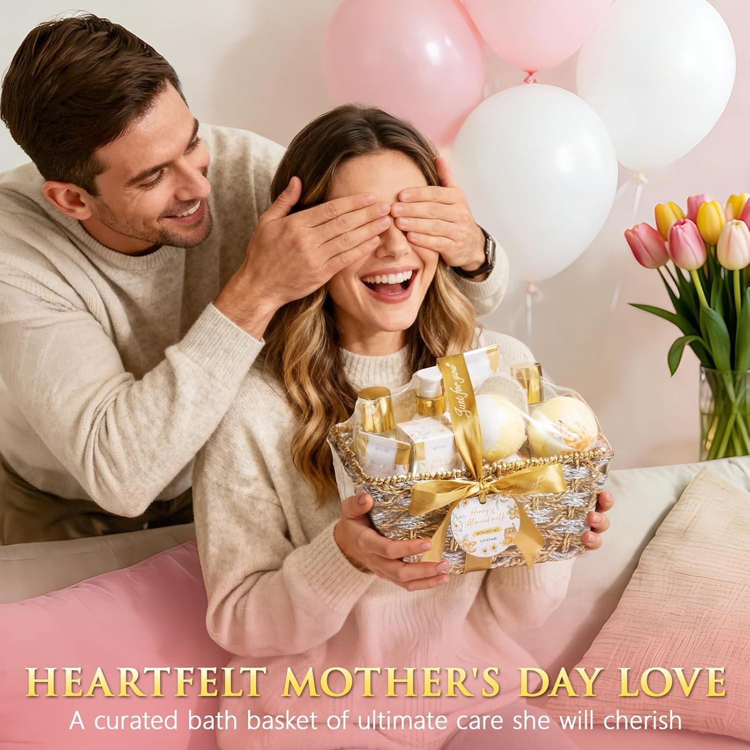 Mothers Day Birthday Gifts for Women, Honey & Almond Milk Relaxing Spa Gift Baskets for Women Self Care Package Bath Gift Set, Home Bath and Body Kit Pamper Gifts for Womens Her Mom Friends Sister