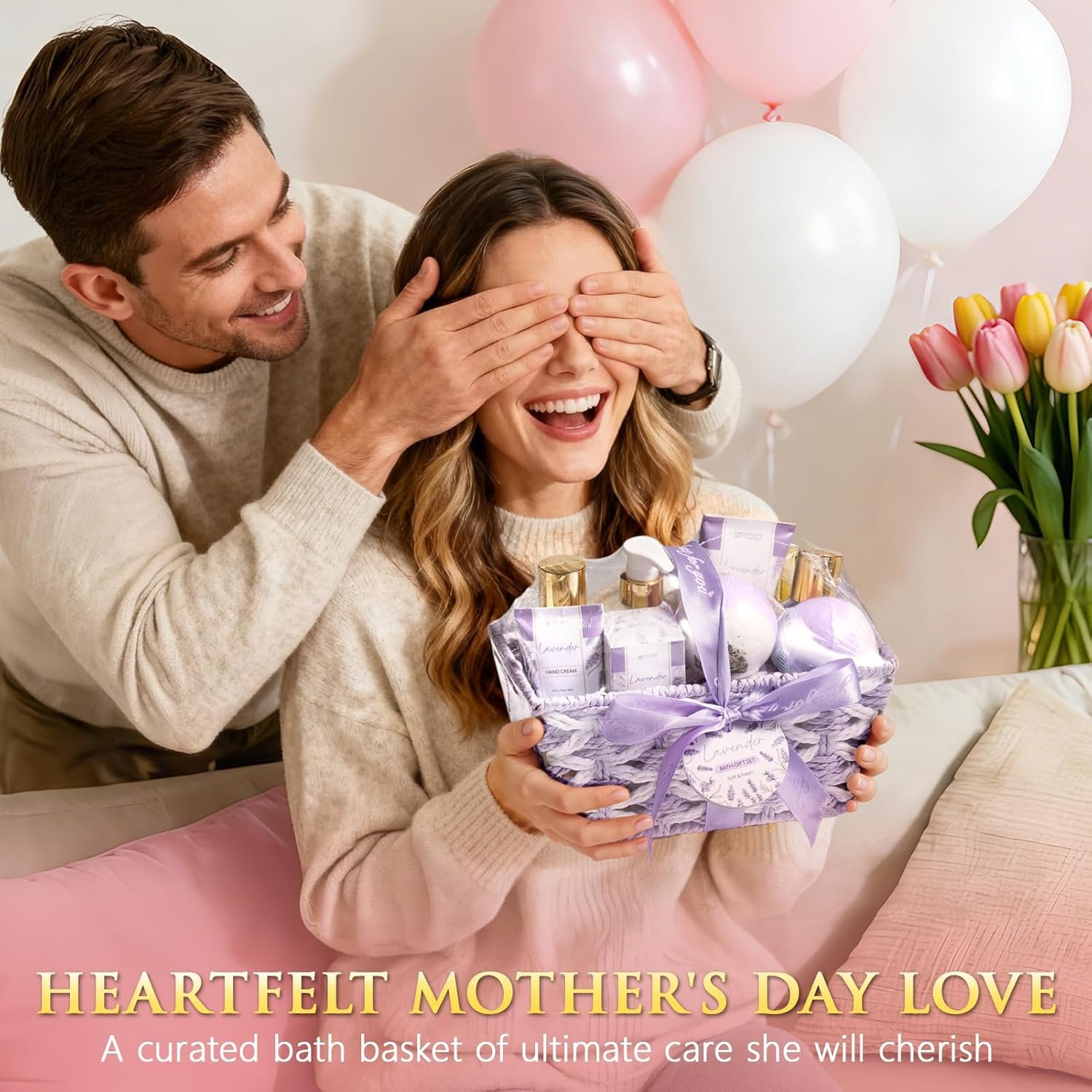 Mothers Day Birthday Gifts for Women, Lavender Relaxing Spa Gift Baskets for Women Self Care Package Bath Gift Set, Home Bath and Body Kit Pamper Gifts for Womens Her Mom Friends Wife Girlfriend Wife