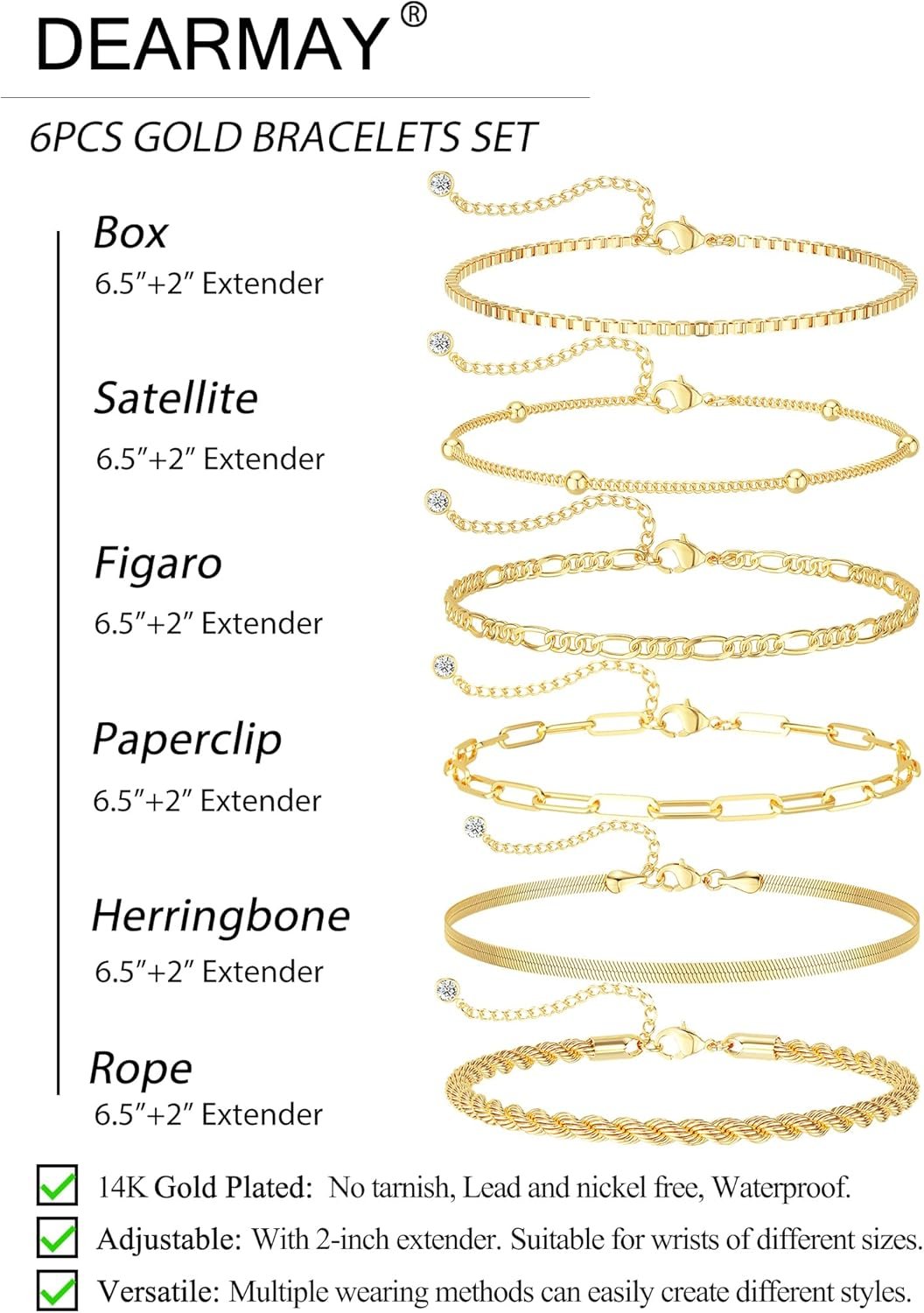 14K Gold Plated Process Finish Bracelets for Women & Each Bracelets Length:6.5″+2″ extender.