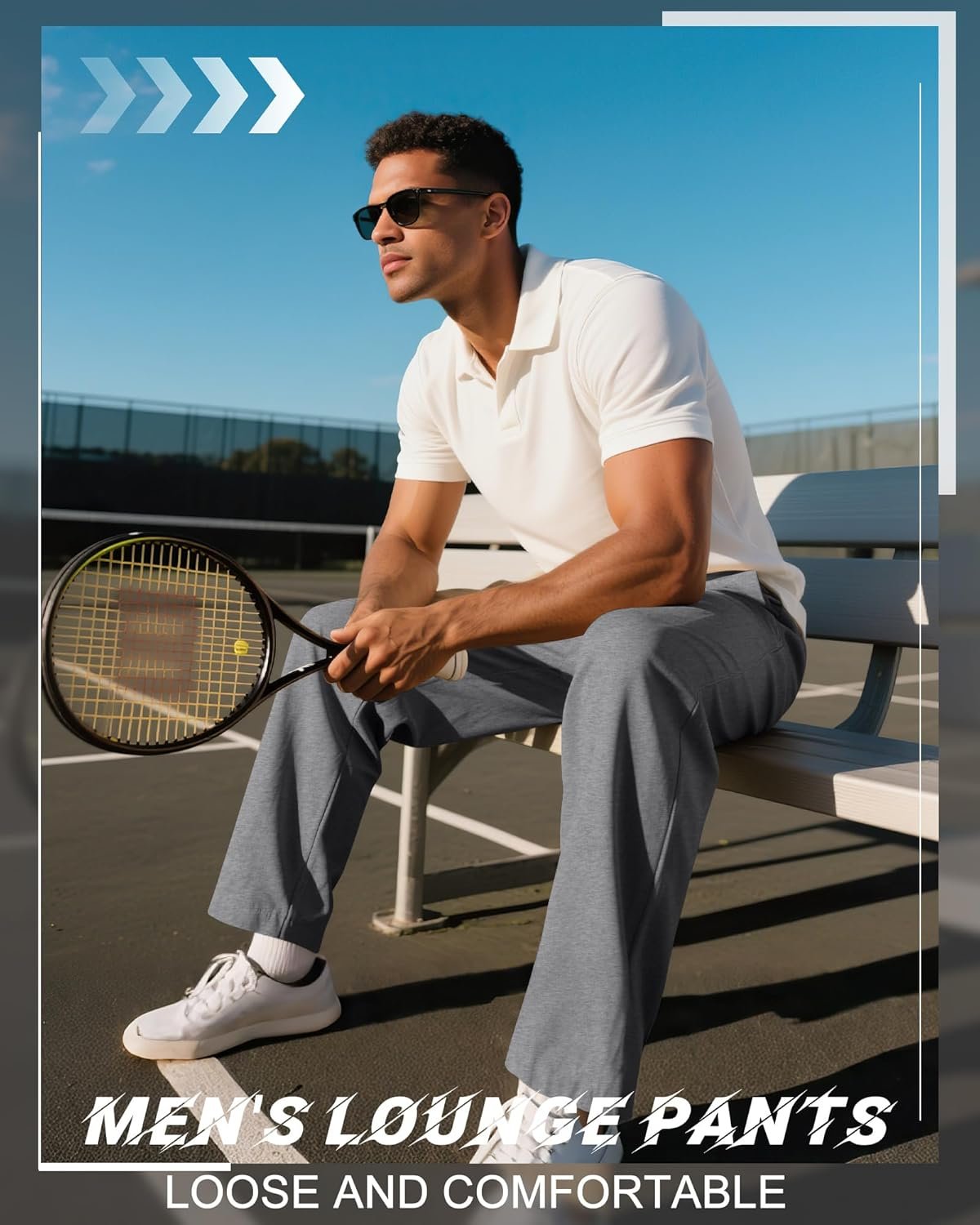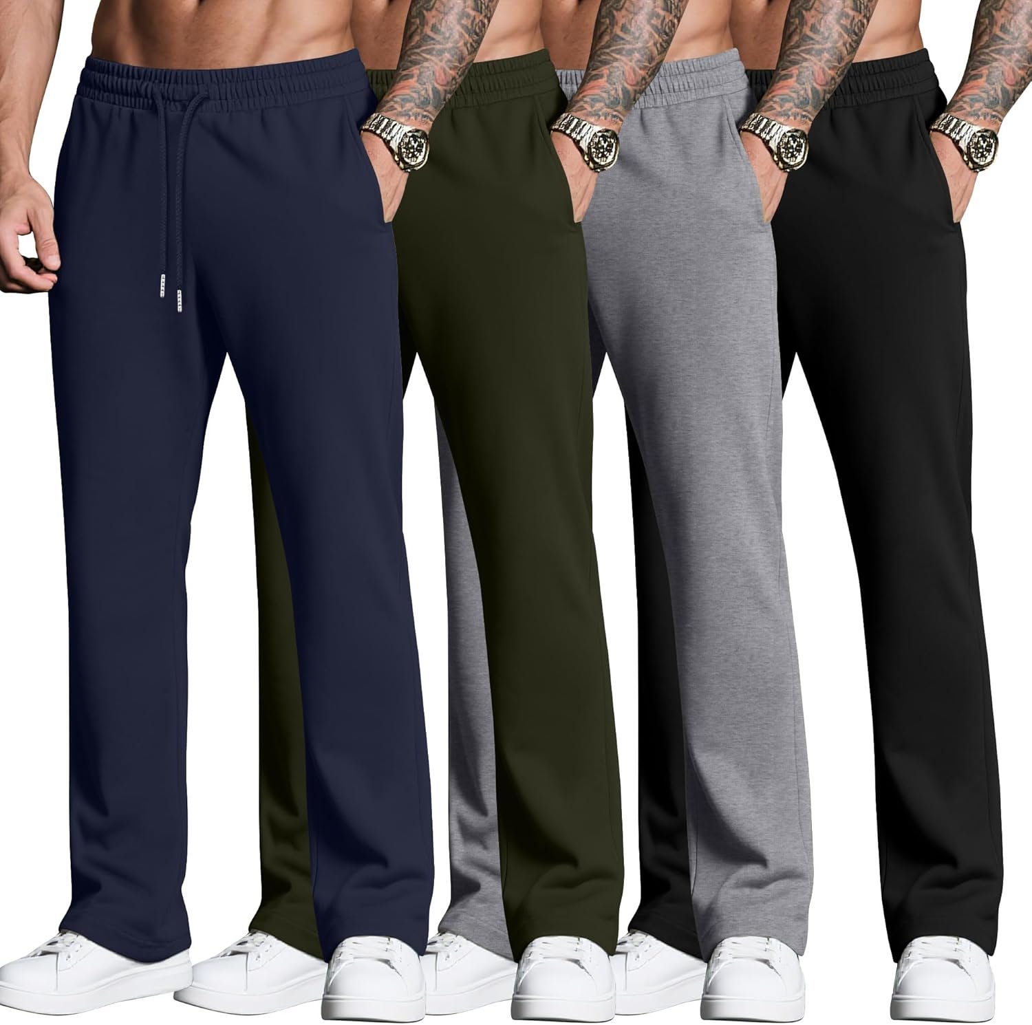 Neer 4 Pack Men’s Sweatpants Joggers with Pockets Open Bottom Gym Athletic Pants Baggy Workout Casual Running Clothing