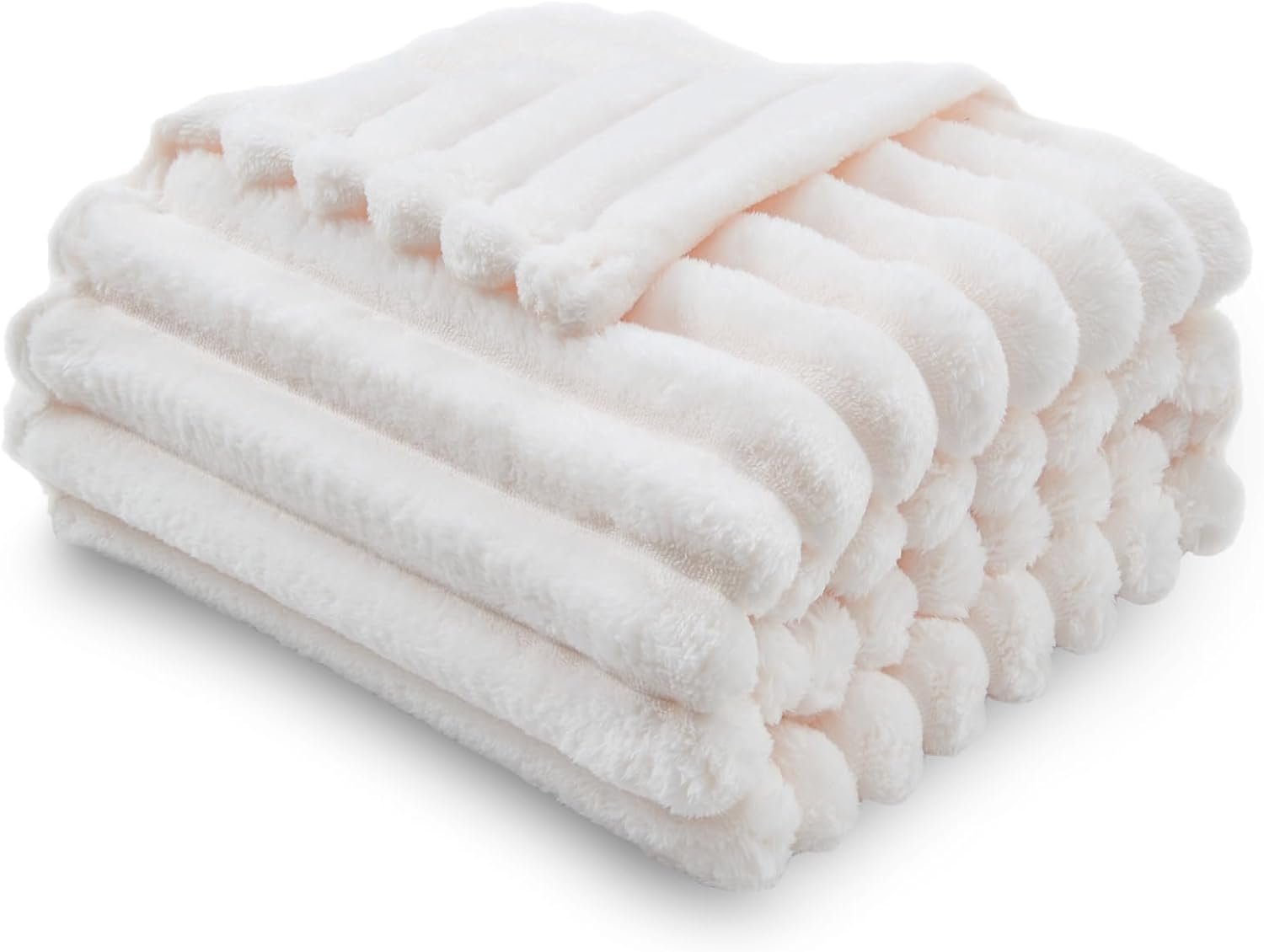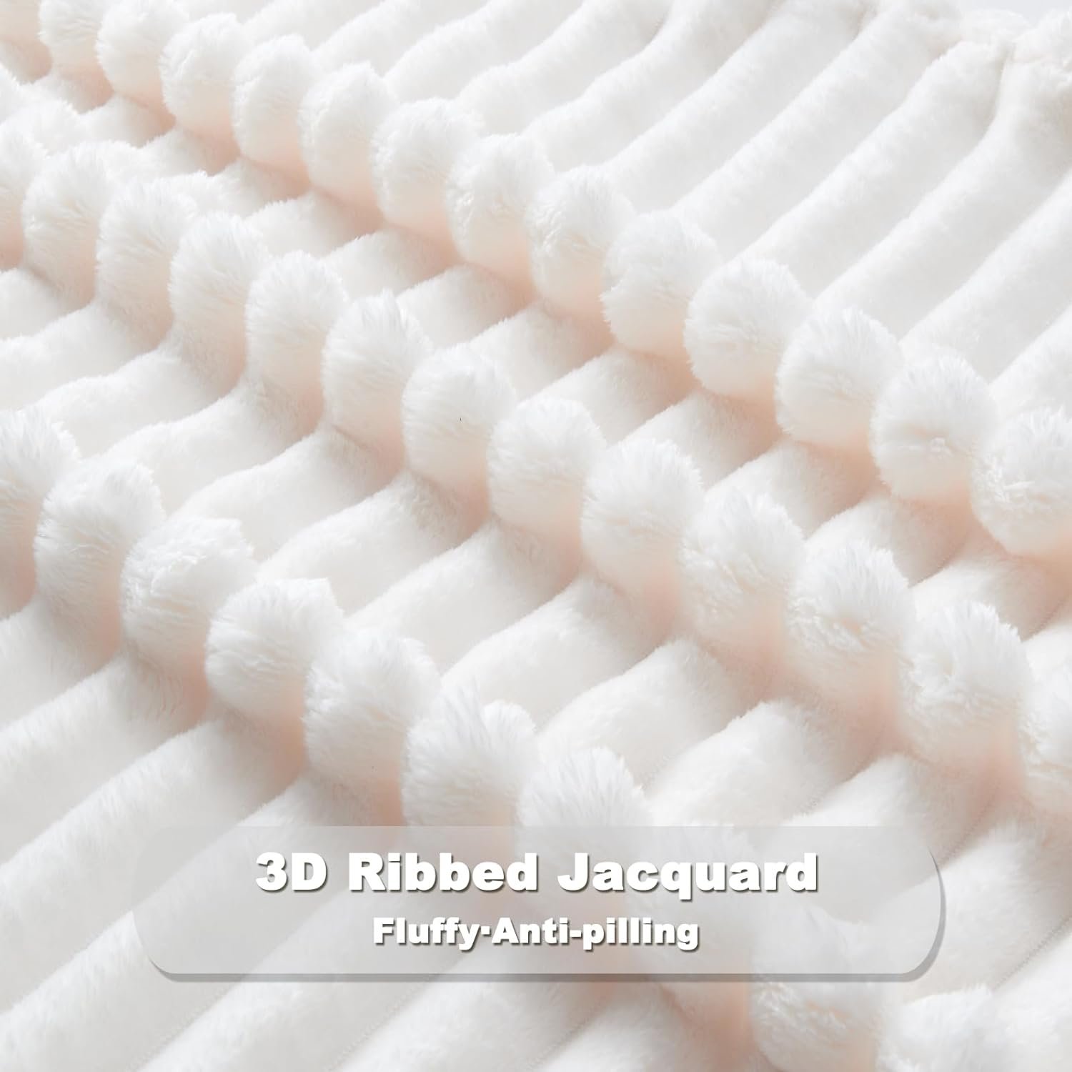 NEWCOSPLAY Super Soft Throw Blanket Ivory Premium Silky Flannel Fleece 3D Ribbed Jacquard Lightweight Bed Blanket All Season Use (Ivory Ribbed, Throw(50″x60″))