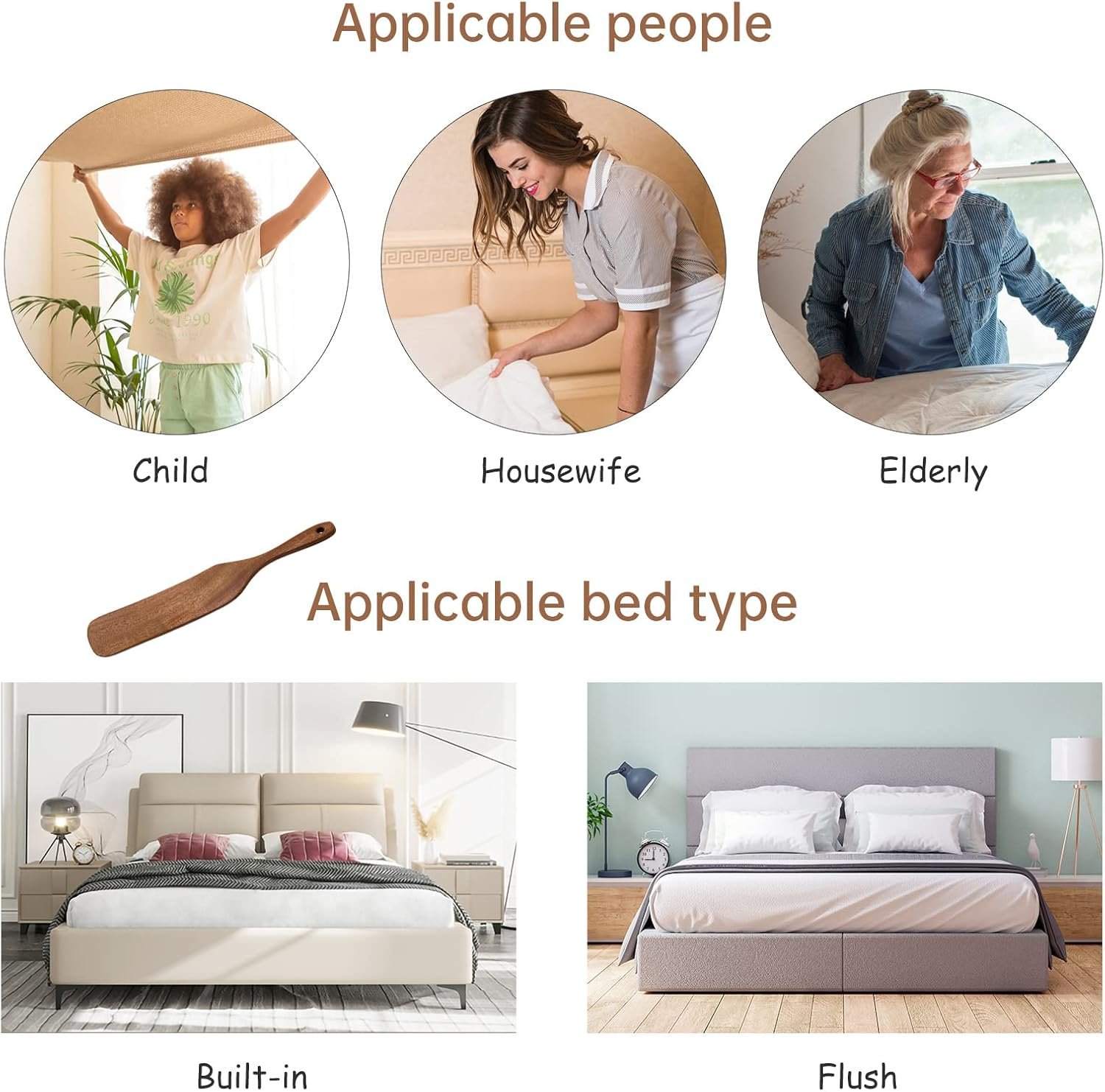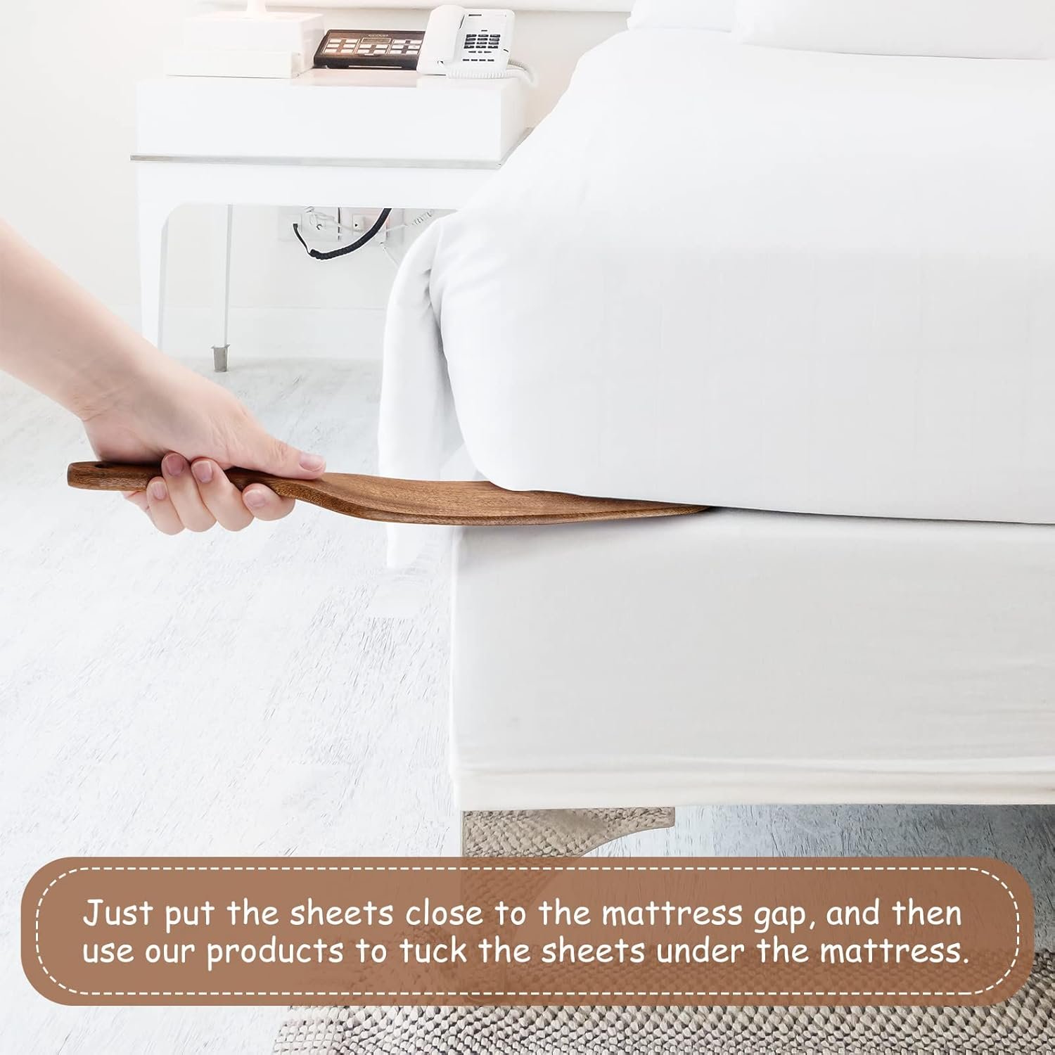 ✅【Making Bed with Ease】This sheet tucking tool helps simplify bed making. Use the bedsheet paddle to tuck your sheets tighter without having to elevate the heavy mattress, resulting in neat and clean sheets.
