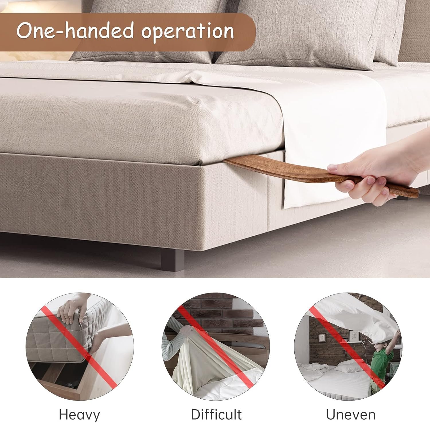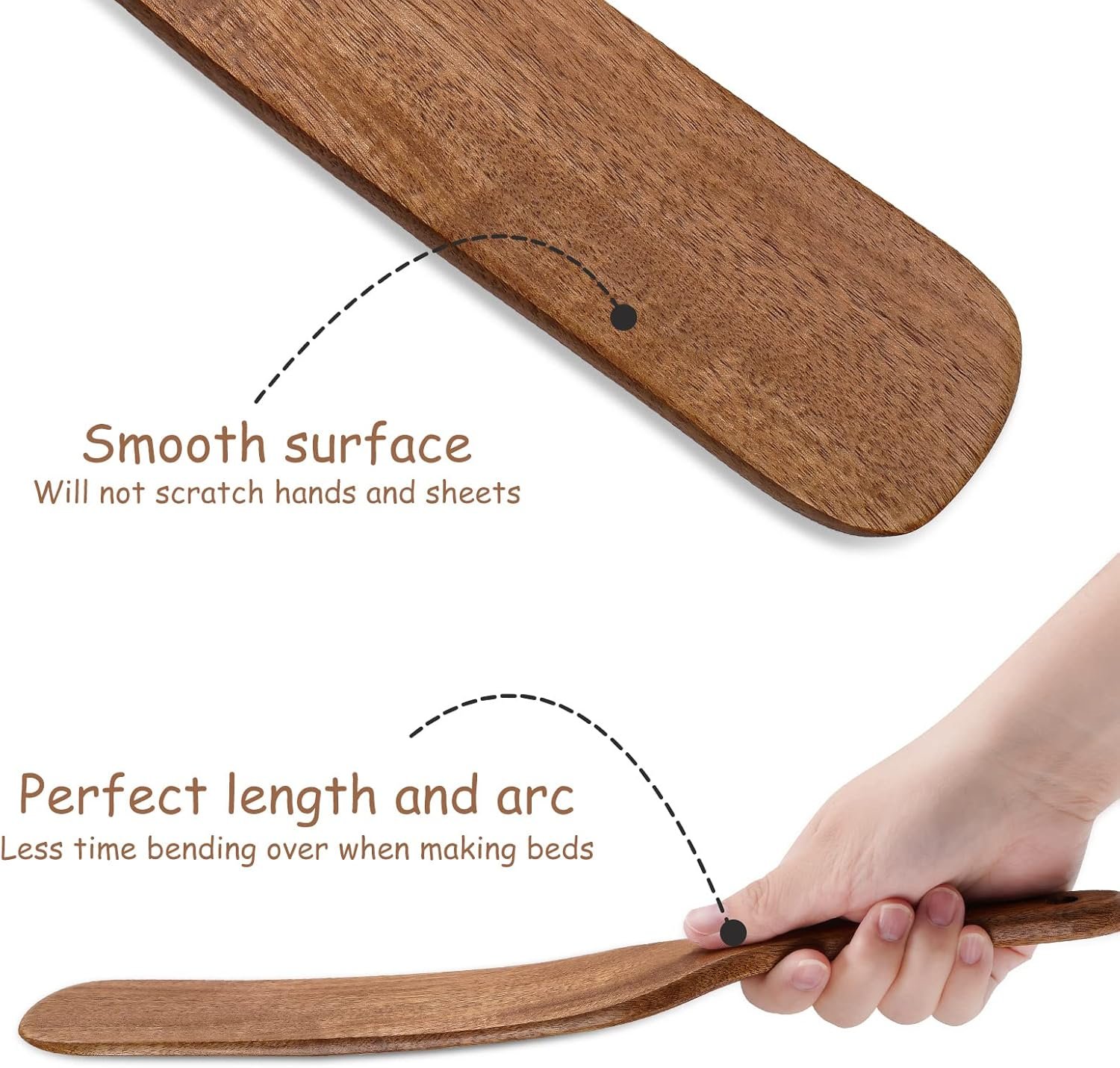 ✅【Premium Material】Our bed making tool is made of high-quality teak wood that is strong, durable, and doesn’t break easily. It has a smooth surface that feels great in the hand and won’t scratch the sheets.