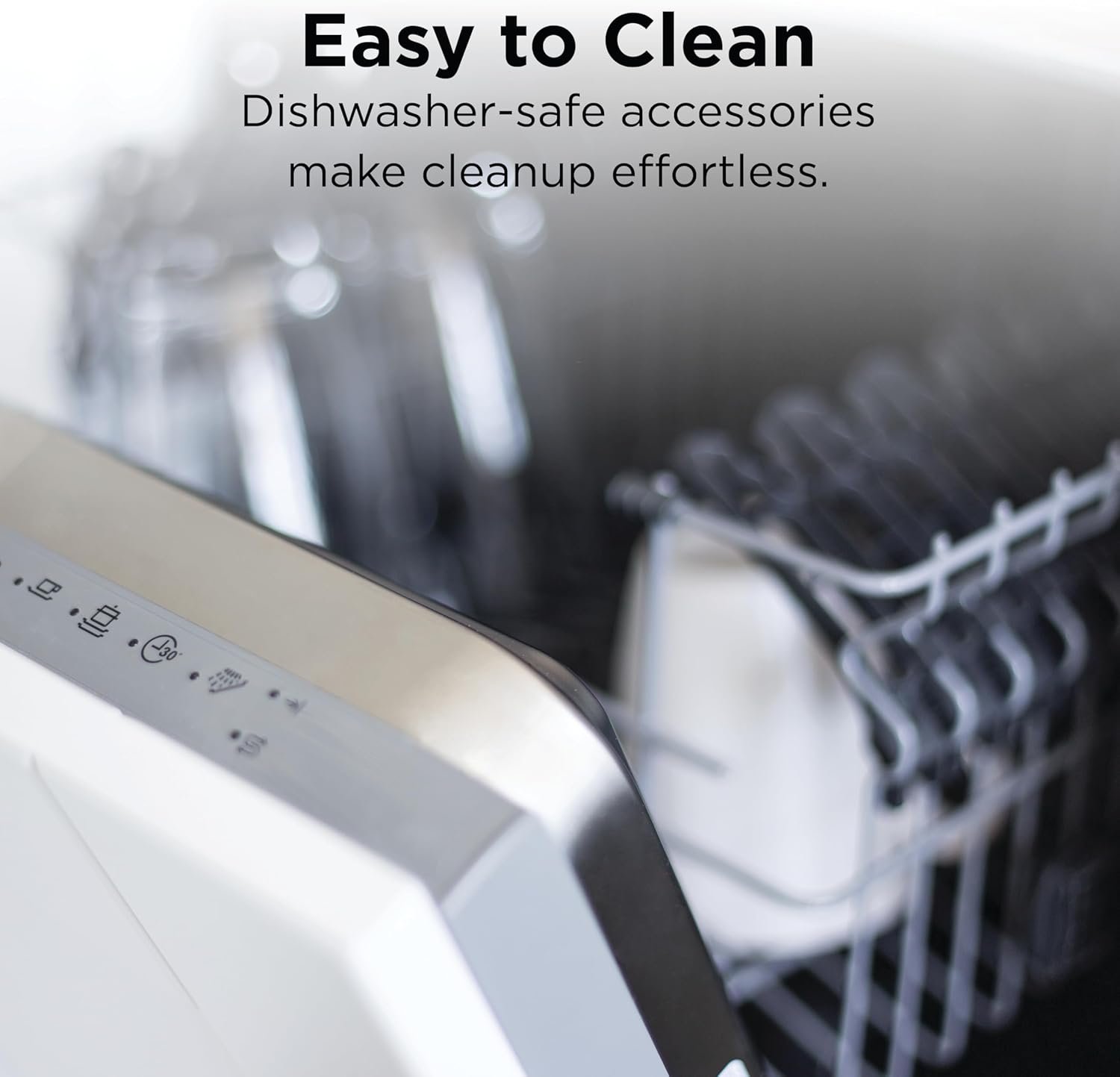 EASY CLEANING: Easy-to-clean baskets and dishwasher-safe crisper plates.