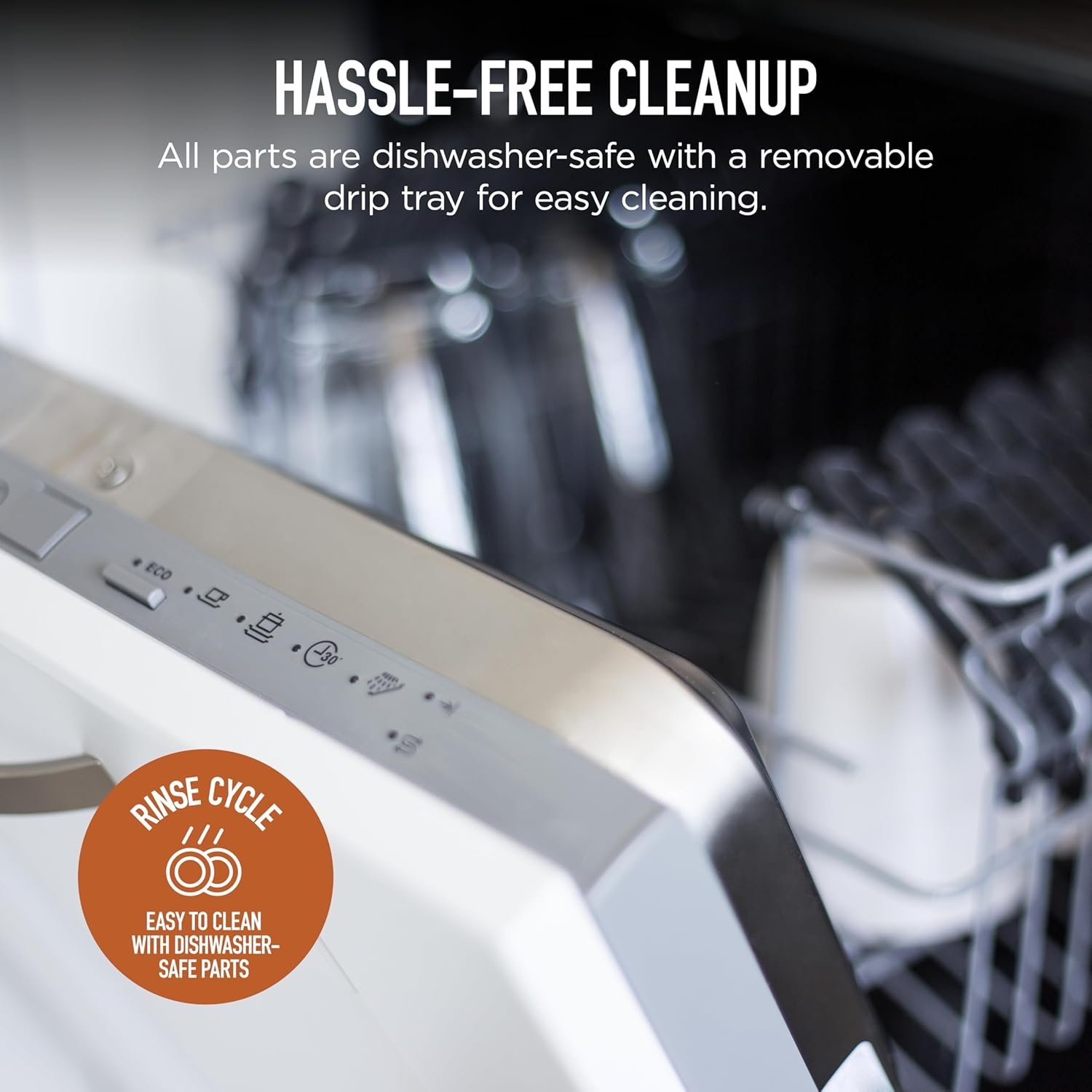 HASSLE-FREE CLEANUP: Easy to clean with dishwasher-safe parts. Features a detachable lid and drip tray allowing for easier cleaning between uses.