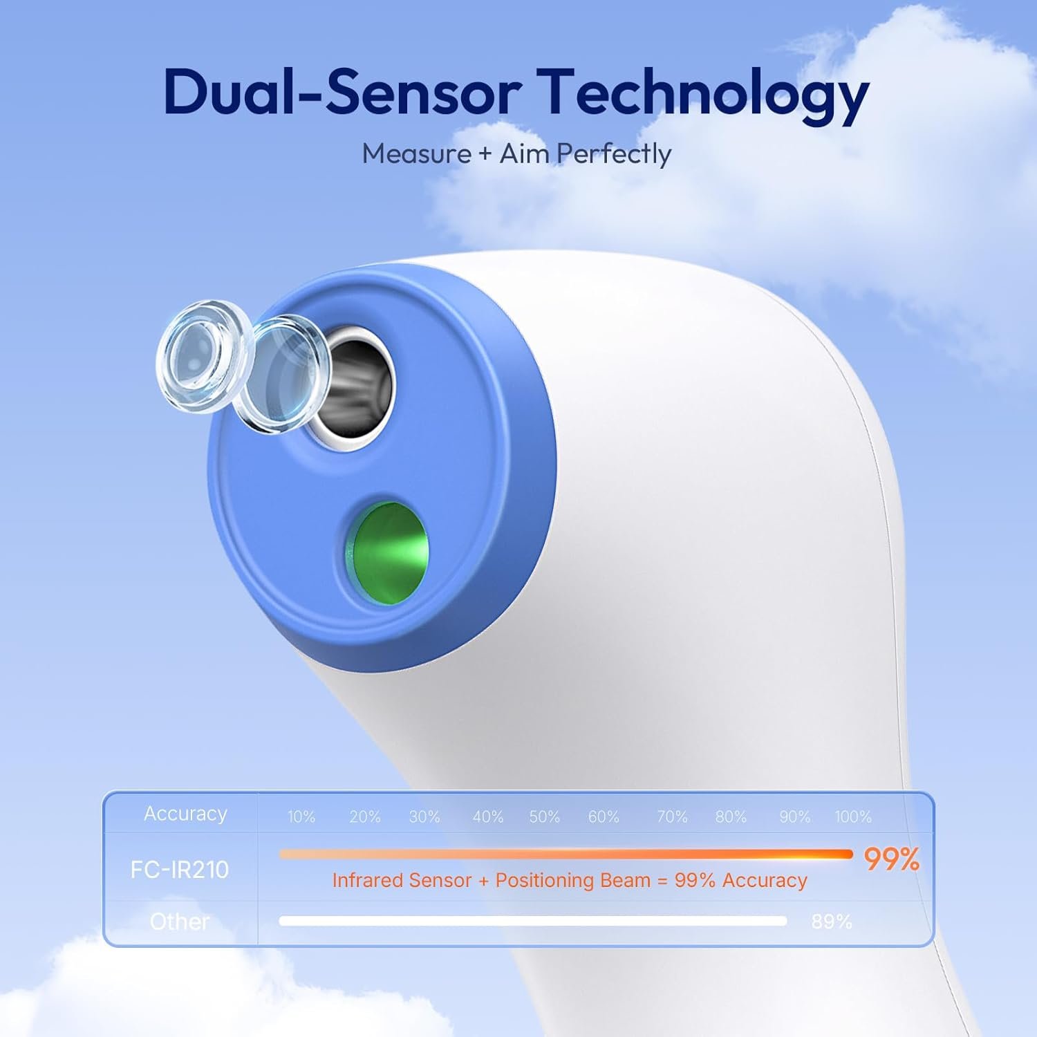 Dual-Sensor Smart System: Combines infrared thermometer with targeting beam to maintain optimal 1.5-inch measurement distance. Measures forehead, objects, liquids, and room temperature.