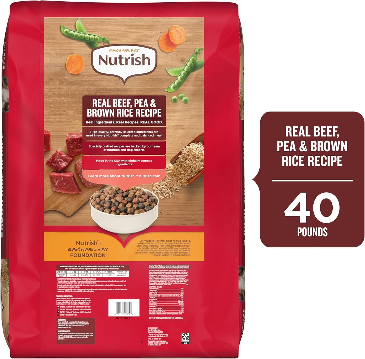 Nutrish Rachael Ray Adult Dry Dog Food Real Beef, Pea & Brown Rice Recipe, 40 lb. Bag (Packaging May Vary)