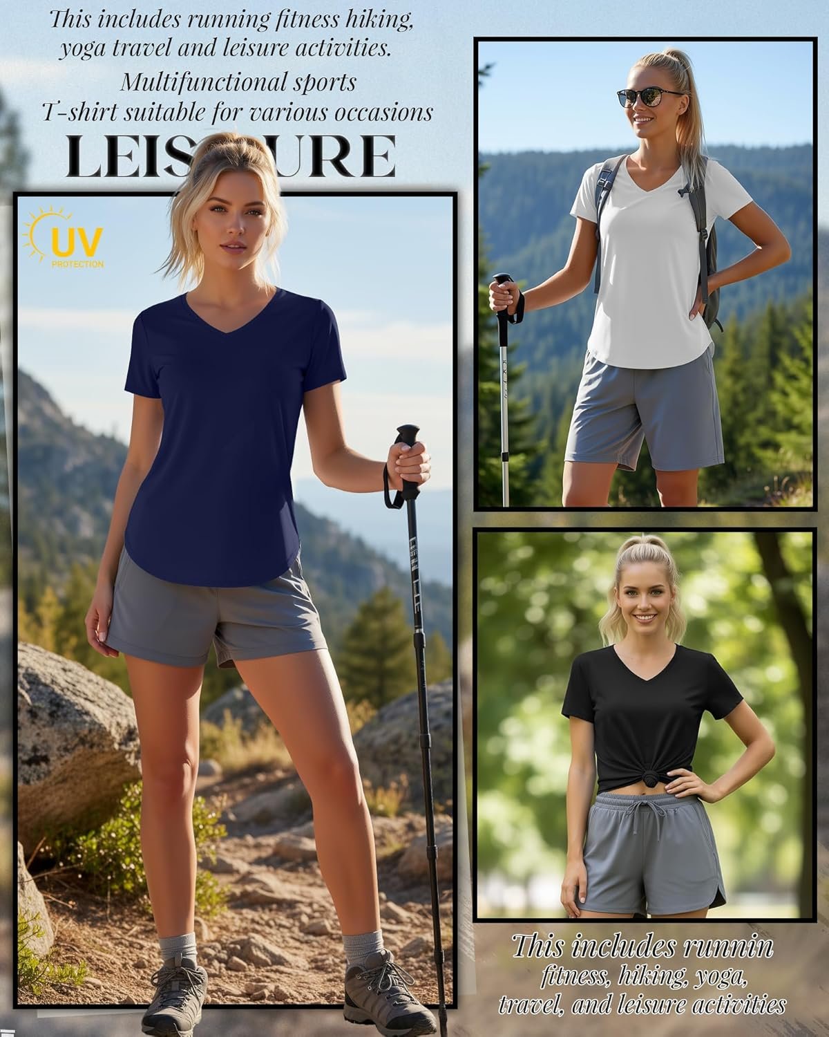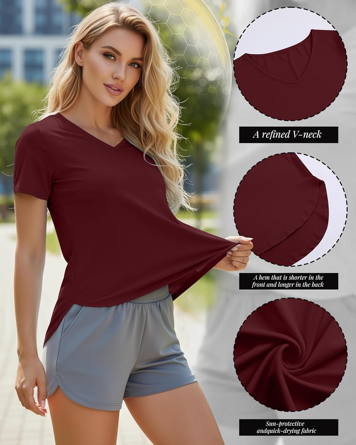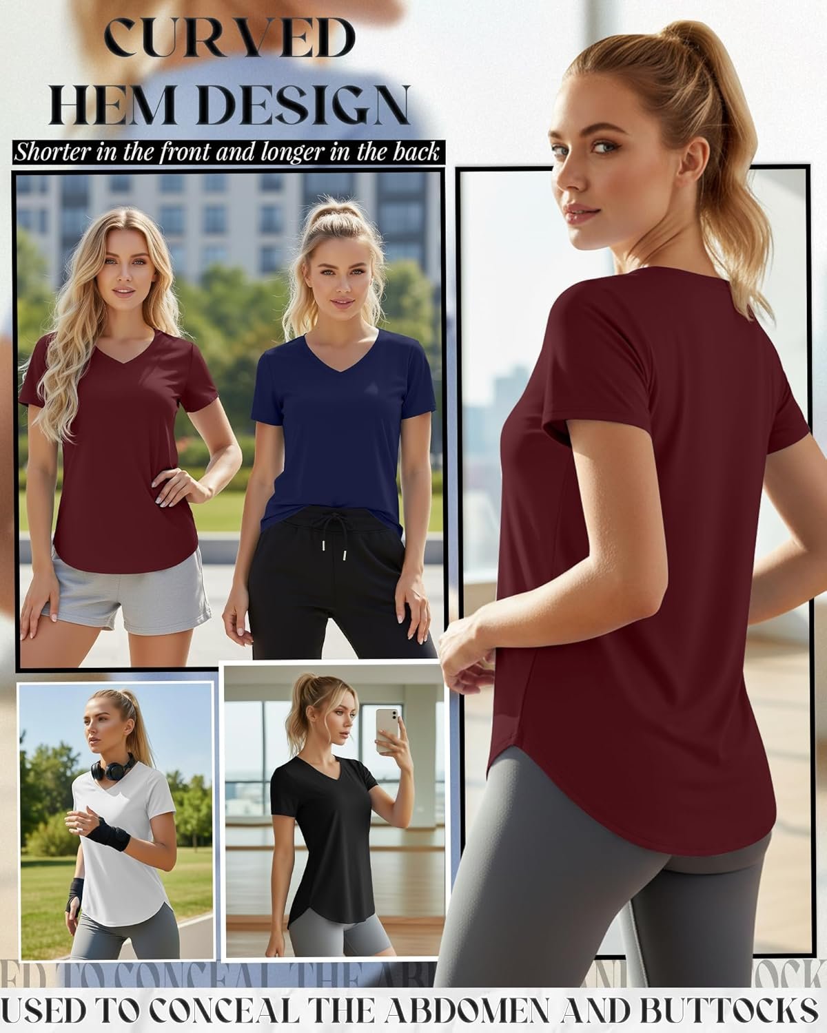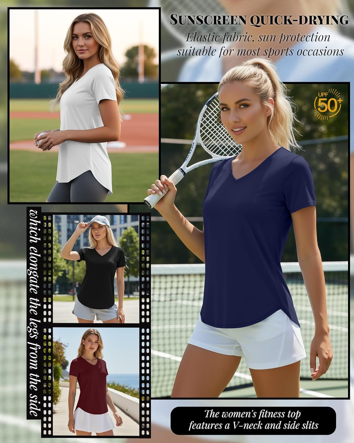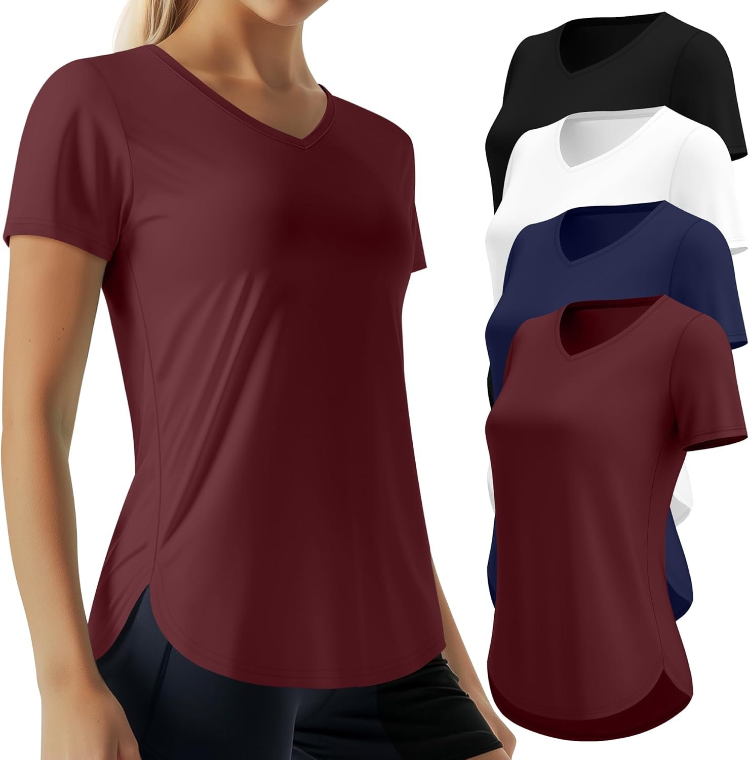 Oakgarden 4 Pack Women’s Workout Tops Quick Dry UPF 50+ Exercise V Neck UV Lightweight Gym Side Slits Curved Hem Shirts(Medium,Black, White, Navy Blue, Burgundy Red)