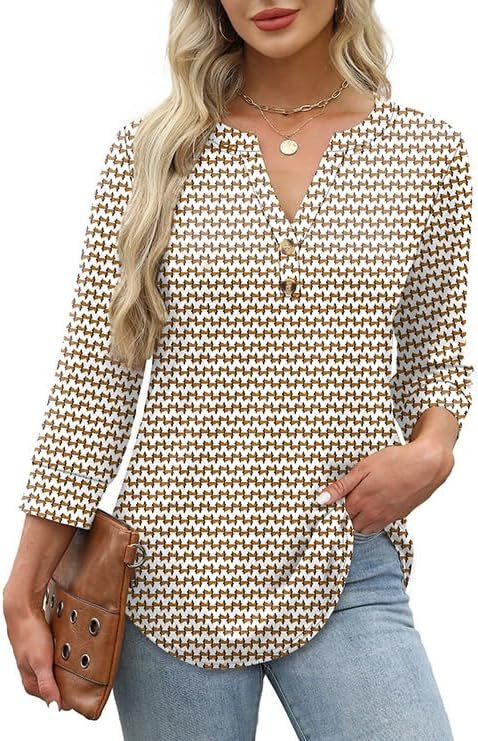 OFEEFAN Womens Tops 3/4 Sleeve Henley Shirts for Women Fall Fashion 2025 School Outfits for Teachers