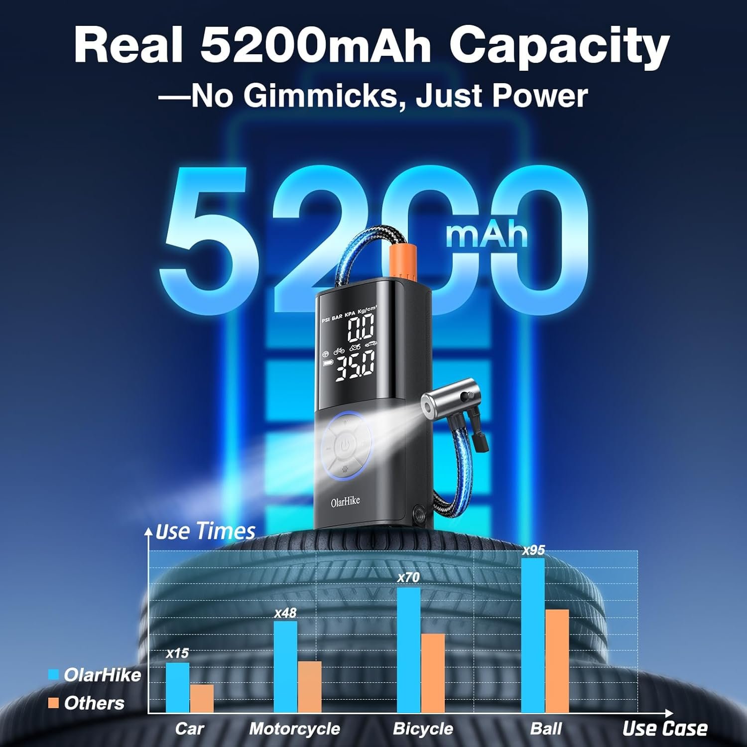 OlarHike Tire Inflator Portable Air Compressor, Smart Dual Hose System, Auto Air Pump for Car Tires, Bike,Bicycle, Motorcycles,Electric Pump with LED Light & Digital Pressure Gauge