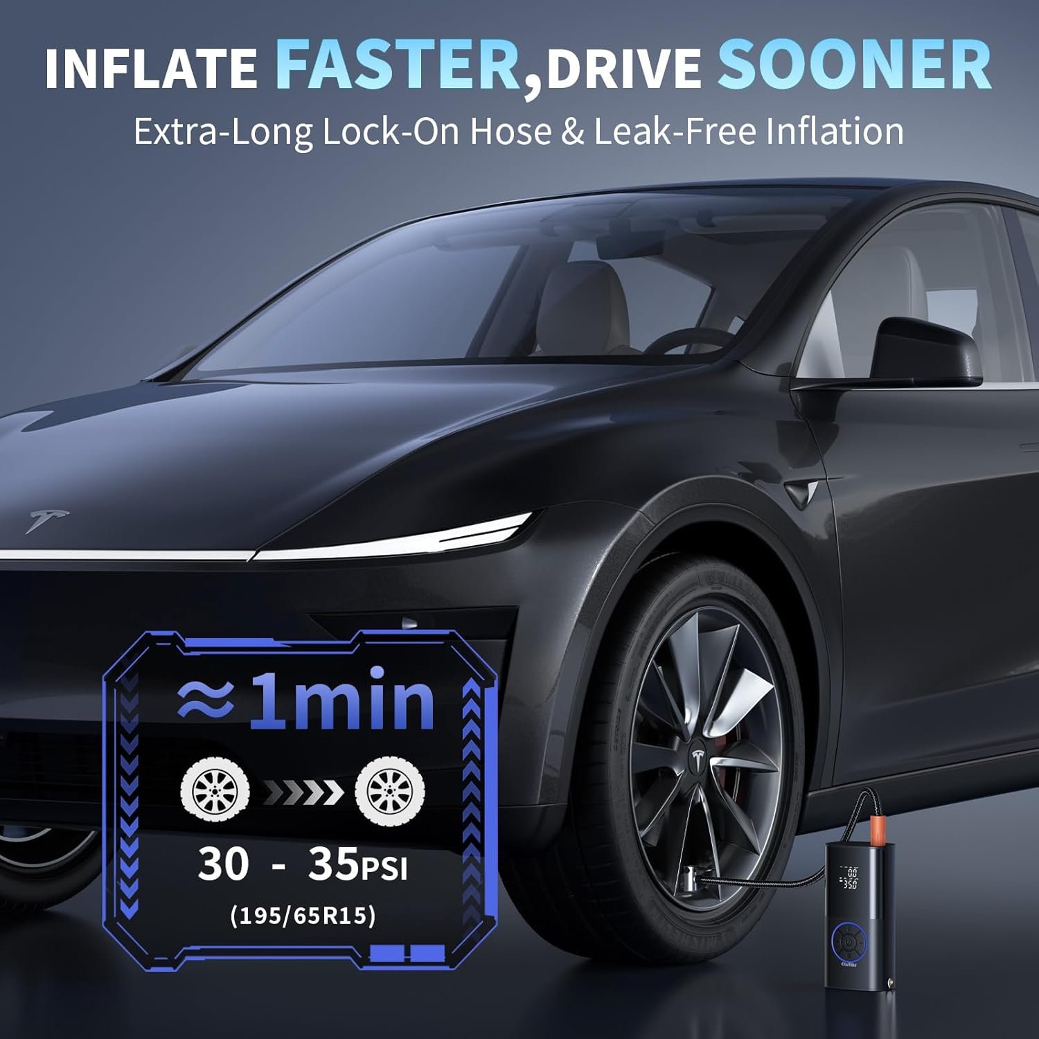【PRECISE DISPLAY & AUTO SHUTOFF】The integrated high-precision pressure sensor and LED display make monitoring the inflation process easy. Once the tire reaches the preset pressure, the pump automatically shuts off to avoid over-inflation