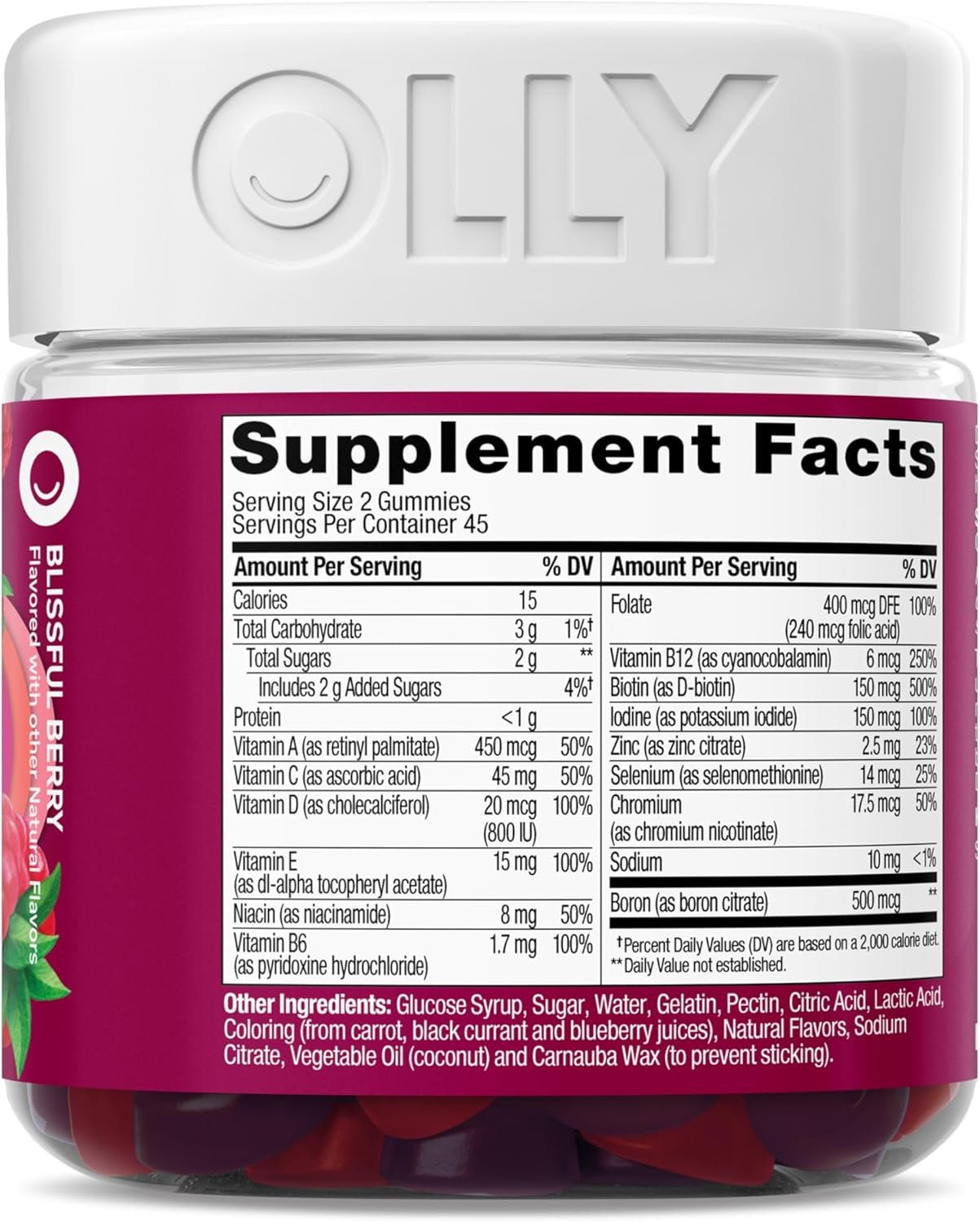 #1 GUMMY SUPPLEMENT BRAND: OLLY Women’s Multi gummies are berry delicious multivitamins that deliver nutrients for women’s overall wellness. They help you fill in the nutritional gaps when eating habits are less than perfect*