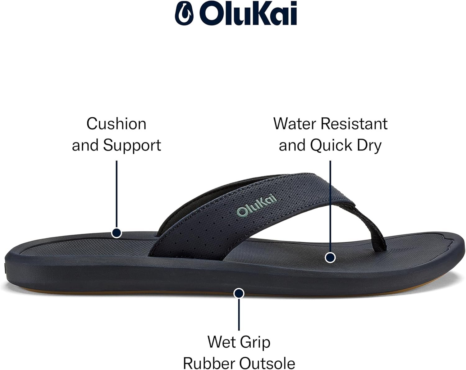 OLUKAI Ki’i Men’s Beach Sandals, Quick-Dry Flip-Flop Slides, Water Resistant & Lightweight, Compression Molded Footbed & Ultra-Soft Comfort Fit