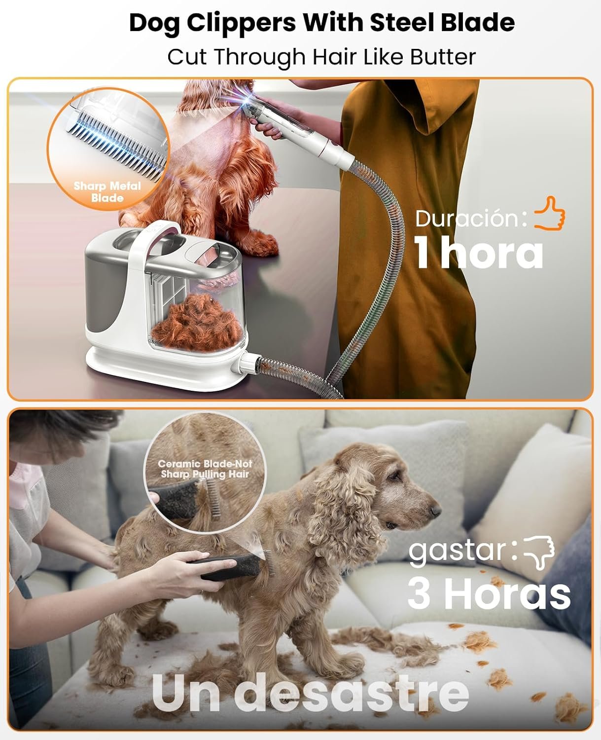 𝐔𝐬𝐞 𝐓𝐨𝐨𝐥𝐬 𝐀𝐥𝐨𝐧𝐞 𝐨𝐫 𝐰𝐢𝐭𝐡 𝐕𝐚𝐜𝐮𝐮𝐦: The core grooming tools—clippers, paw trimmer, and nail grinder—are fully cordless. Use them independently anywhere for quick touch-ups, or connect them to the vacuum hose for a powerful, all-in-one grooming session. Enjoy total freedom to groom your pet in any room or even outdoors.