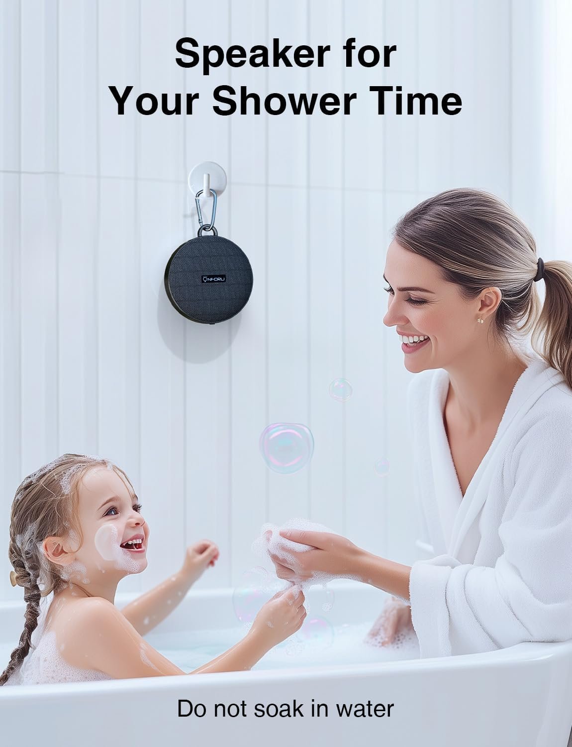 Portable & Compact Design: just 3.24 inches, this mini Bluetooth speaker is convenient to be carried anywhere. And with a metal hook, it is more portable for your travel