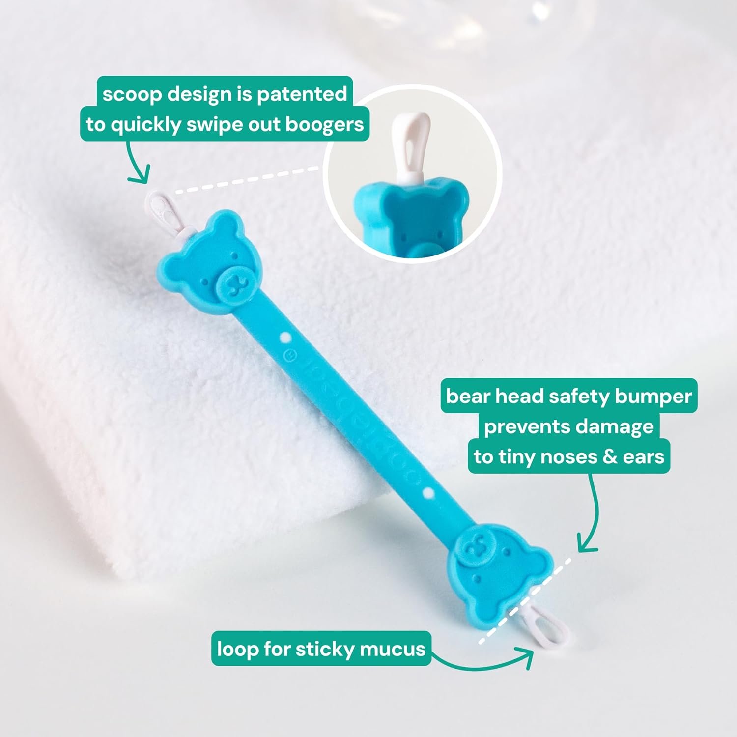 BEAR-ABLE SAFETY AND COMFORT – oogiebear’s special rubber scoop and loop are gentle enough for sensitive little noses and ears and firm enough to clean quickly and effectively while the patented bearhead design ensures it never goes up too far.