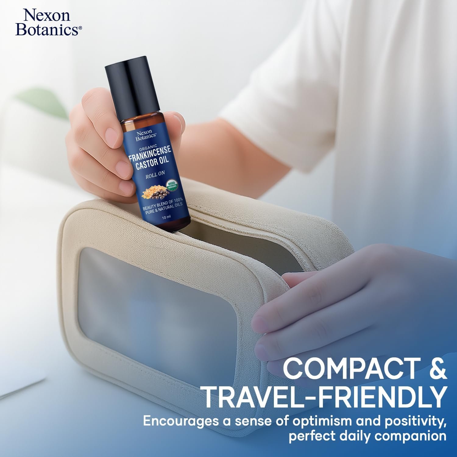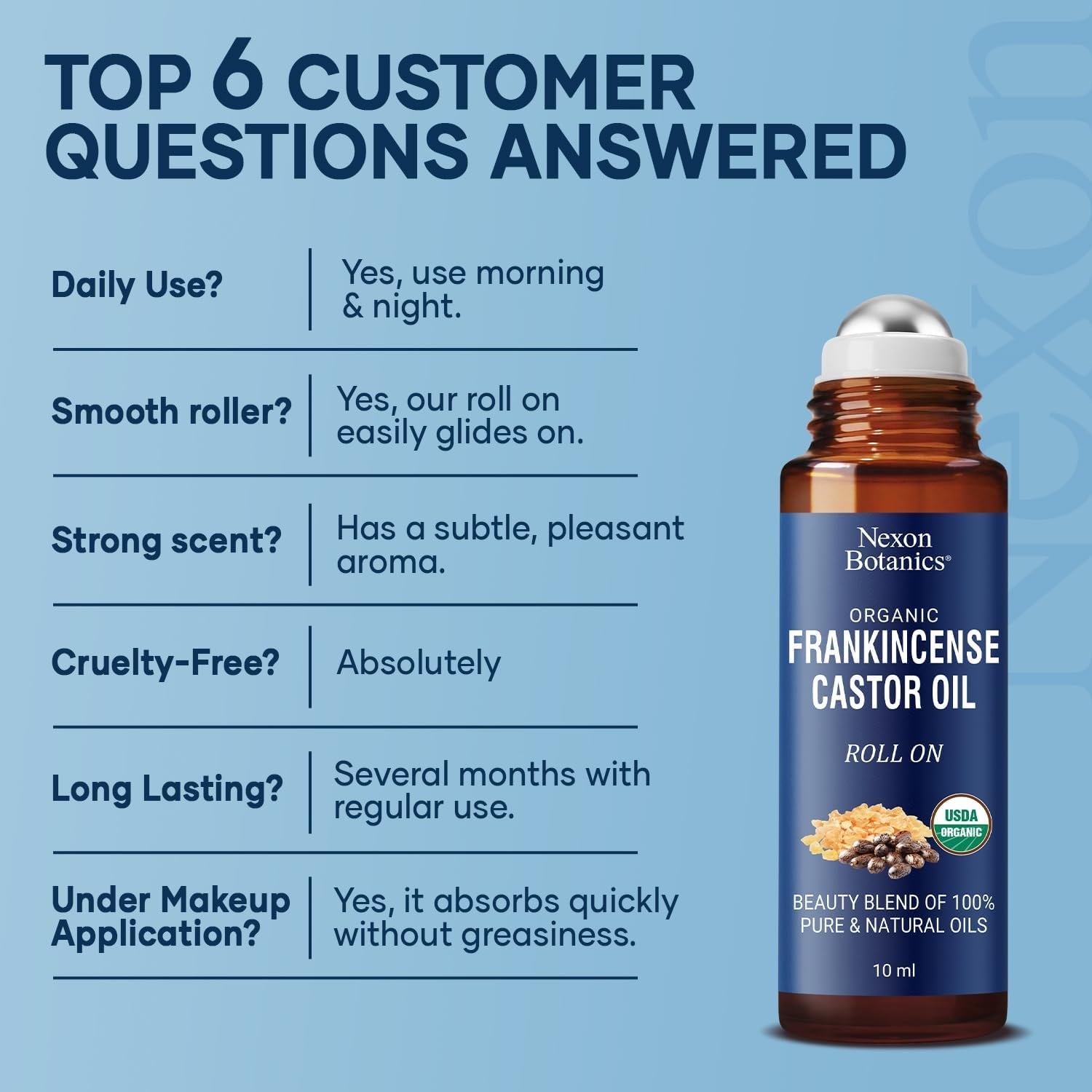 Organic Castor Oil and Frankincense Eye Roller 10 ml – Natural Essential Blend for Under Eye Puffiness & Fine Lines – Lightweight Roll On – Nexon Botanics