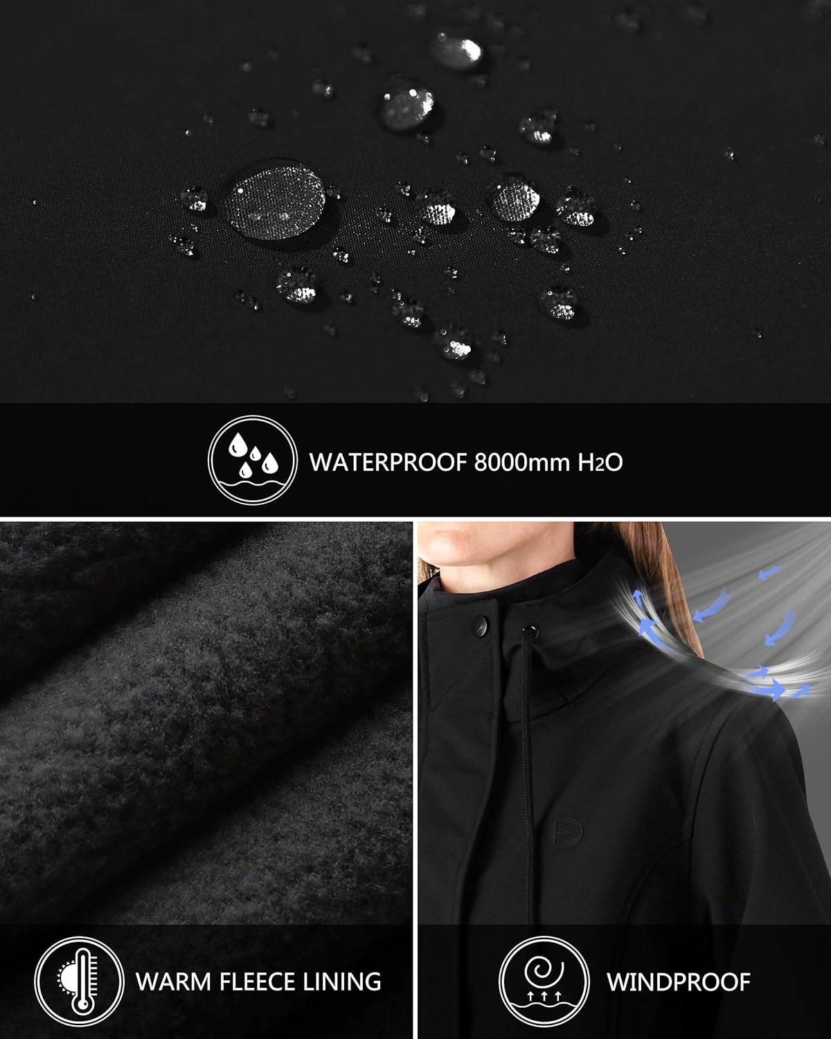 Outdoor Ventures Women’s Lightweight Waterproof Fleece Lined Hooded Softshell Rain Jacket, Warm Windbreaker Long Coat