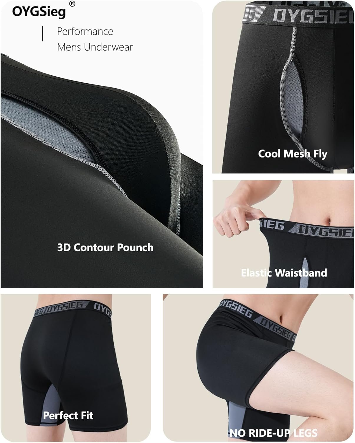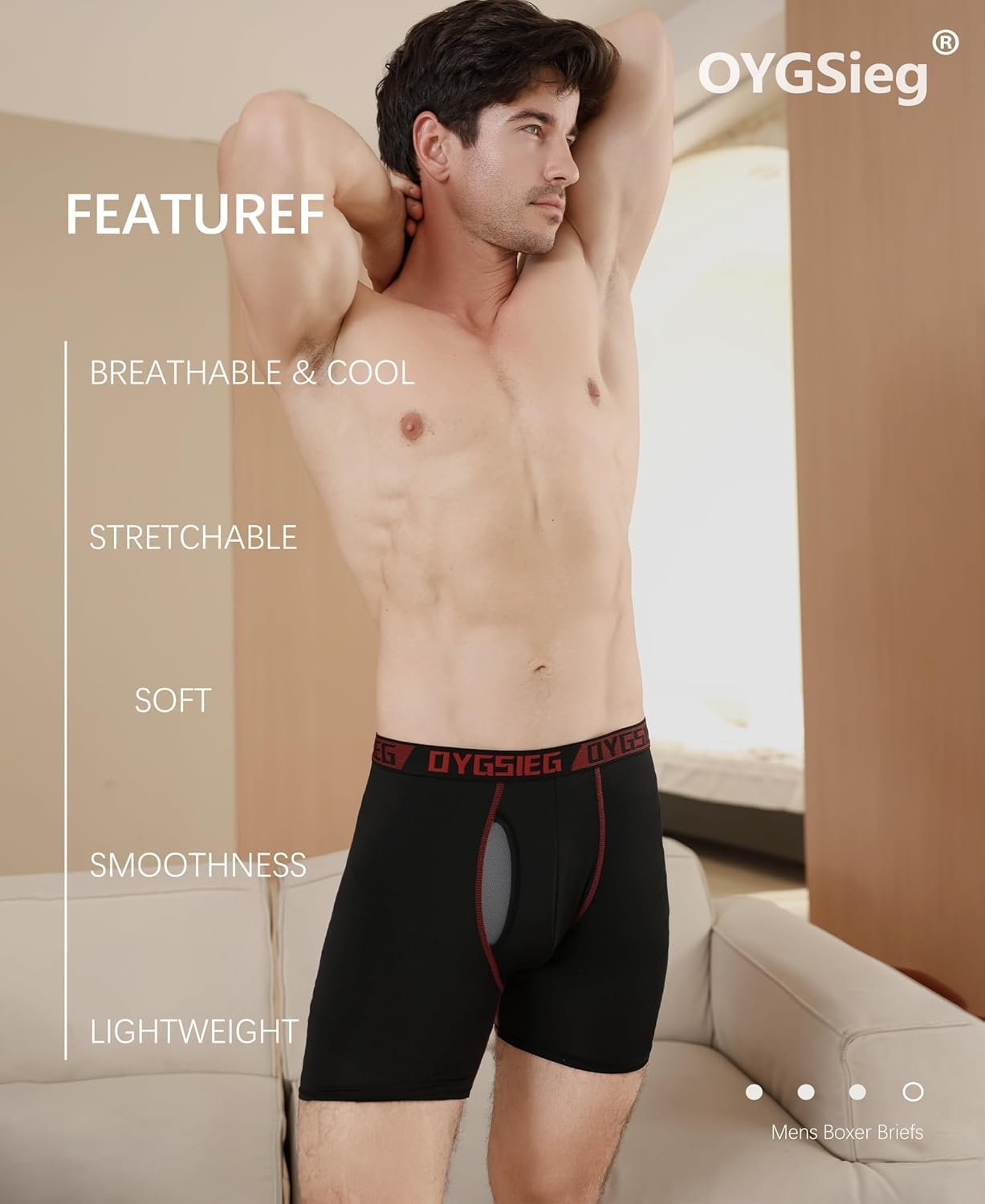 OYGSieg Men’s Boxer Briefs,Fly with Built-in Total Support Pouch Moisture-Wicking Odor Control Cool Underwear for Men 5-Pack