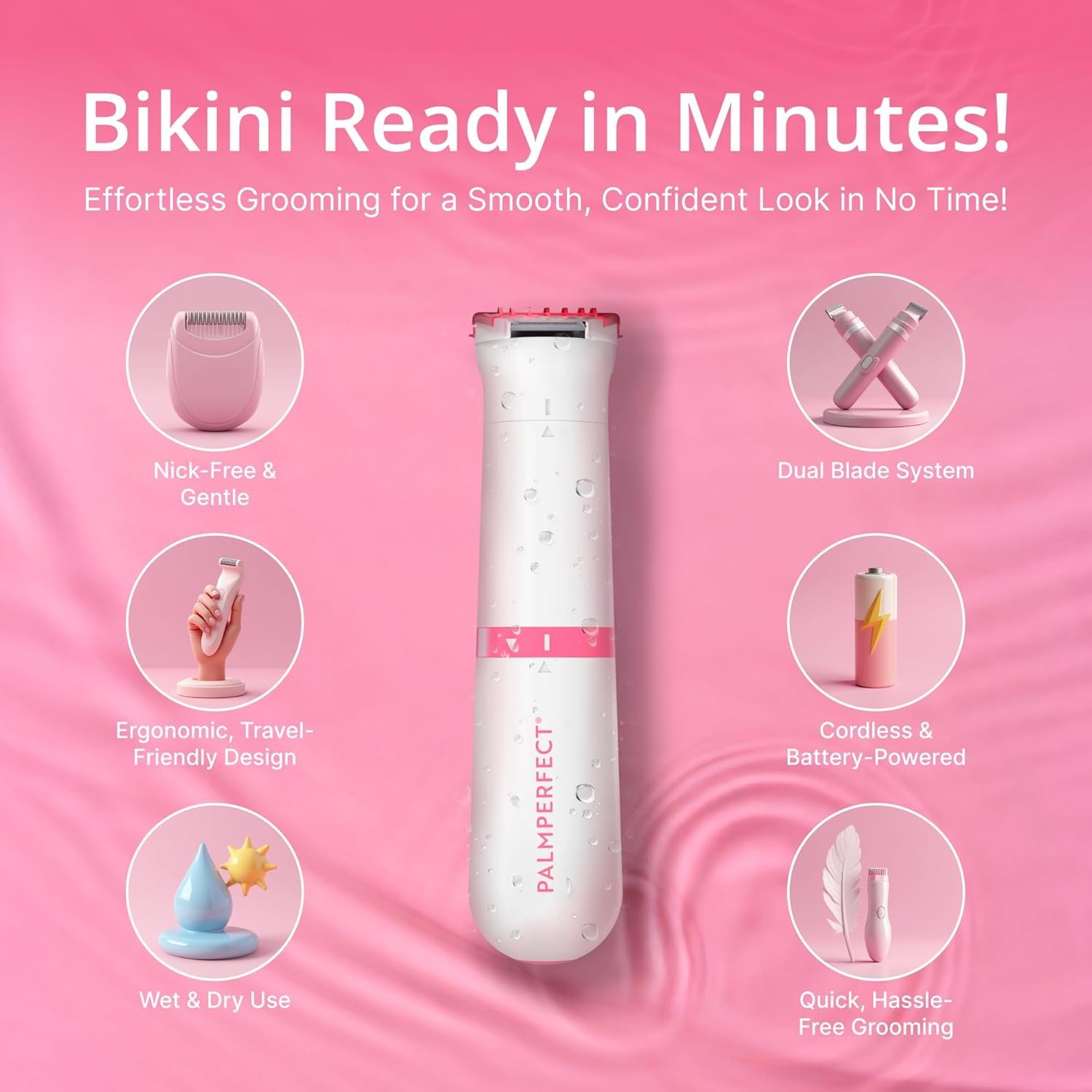 PalmPerfect Bikini Trimmer for Women – Precise & Gentle Hair Removal for Sensitive Areas – Dual Blade System with Rounded Tips – Waterproof Wet/Dry Grooming with Trimming Guide