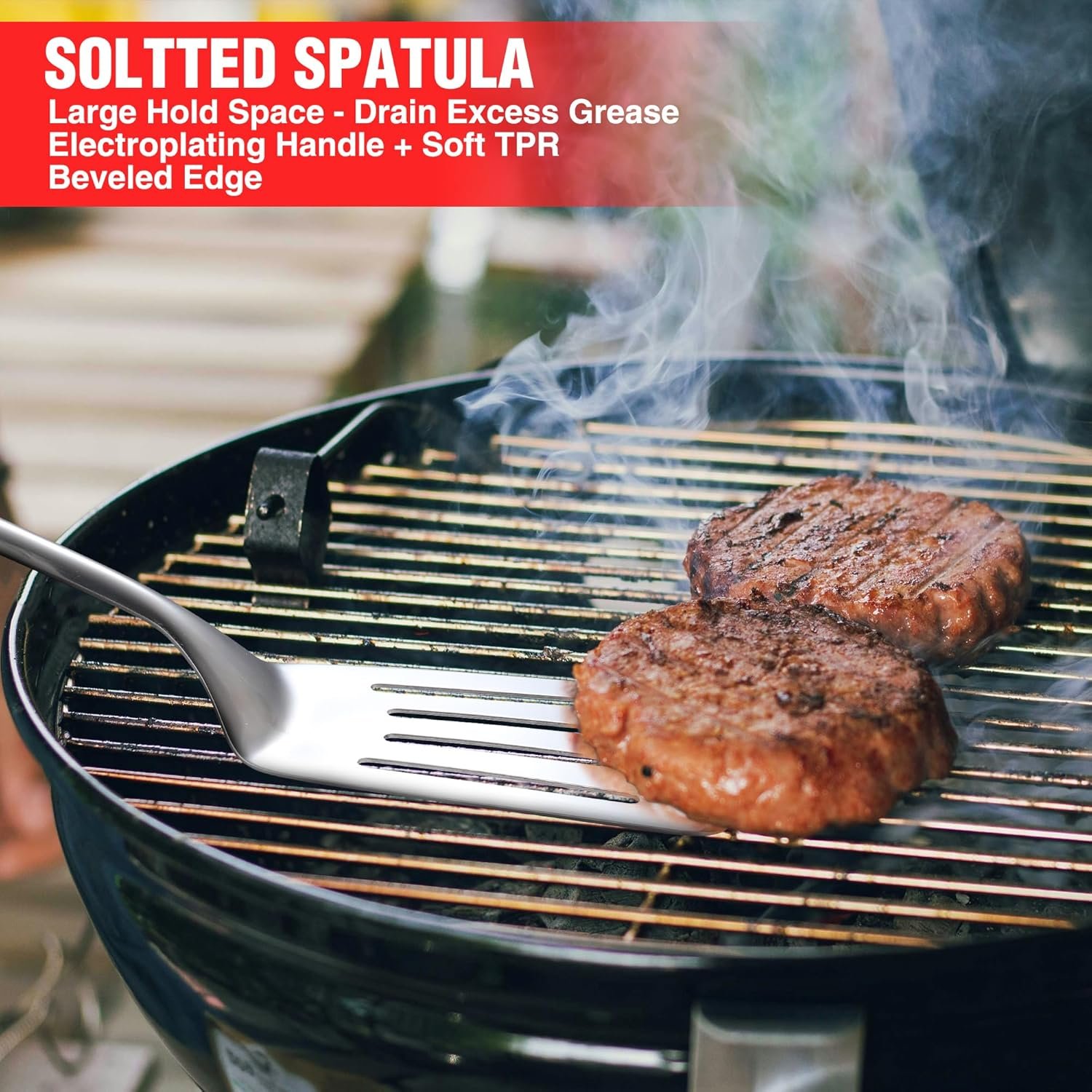PARGRILL Grill Accessories Heavy Duty BBQ Set Gifts for Men/Women – Premium Stainless Steel Spatula, Fork, Brush & Tongs, Barbecue Utensils Tool Kit Gift for Grilling Lover Outdoor