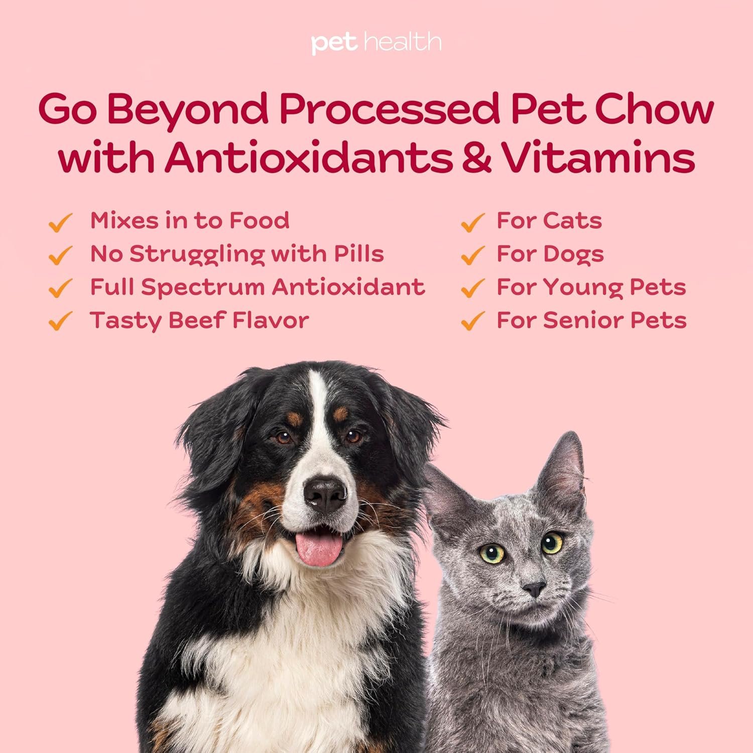 Powerful Antioxidants: Grape seed, red wine, pine bark, bilberry extracts, and citrus bioflavonoids provide free radical protection, promoting overall health and vitality for your pets.