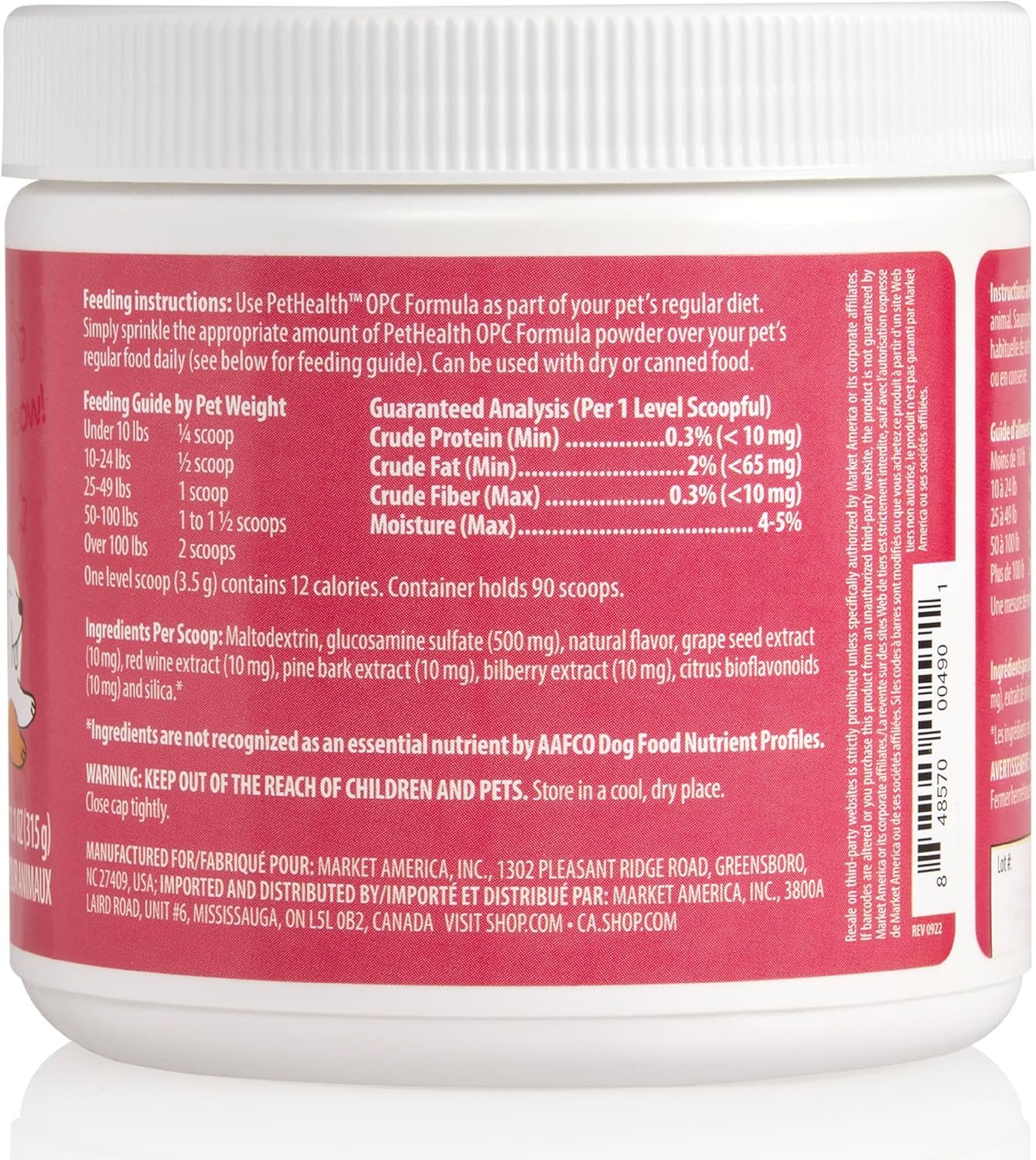 Pet Health OPC Formula with Glucosamine for Dogs & Cats, Beef Flavor – Joint Support, Healthy Circulation, Antioxidant Protection, Supports Cardiovascular & Visual Health (90 Servings)