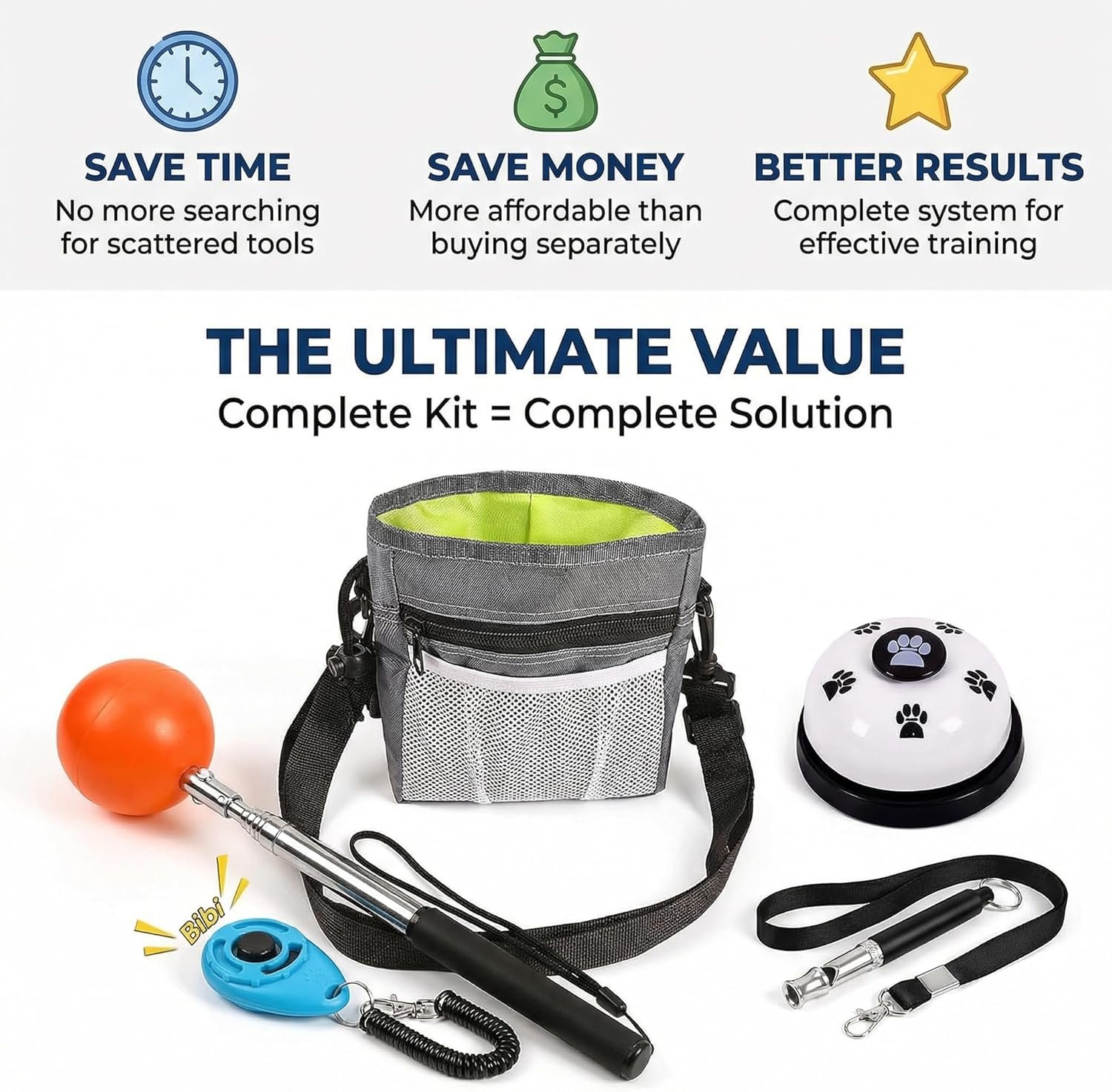 Pet Training Kit -Target Stick,Training Clicker,Whistle,Bell,Treat Pouch- Dog Training Equipment Tools, Agility Training Lure Course For Dogs,Cat Toilet Trainer Kit, Kitten Puppy Behavior Aids Trick