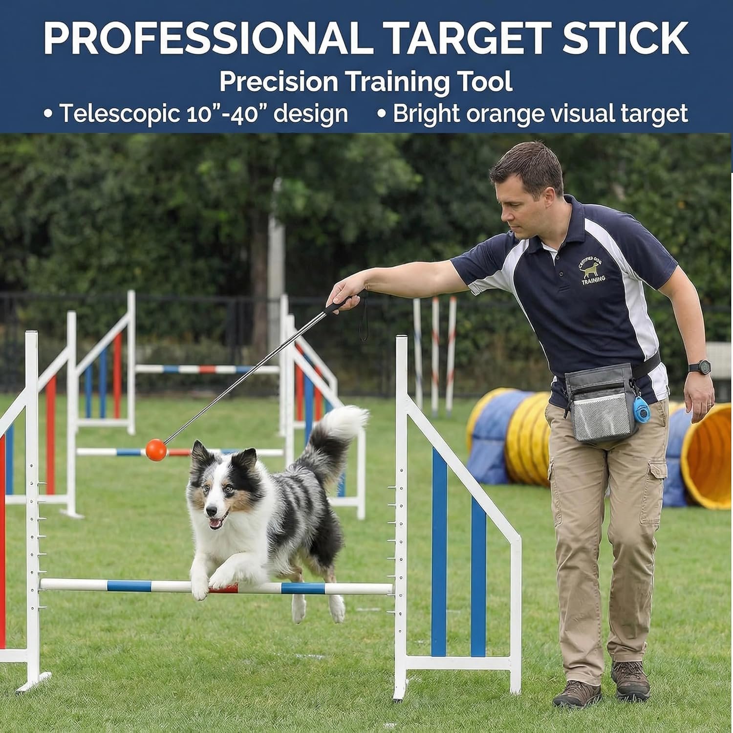 Telescopic Target Stick: The length from 10 to 40 inch, makes it convenient to transport in a pocket or treat bag when not in use and gives flexible options when training. A brightly colored ball at the end of the Target Stick provides a clear visual guide for your dog or cat to follow.