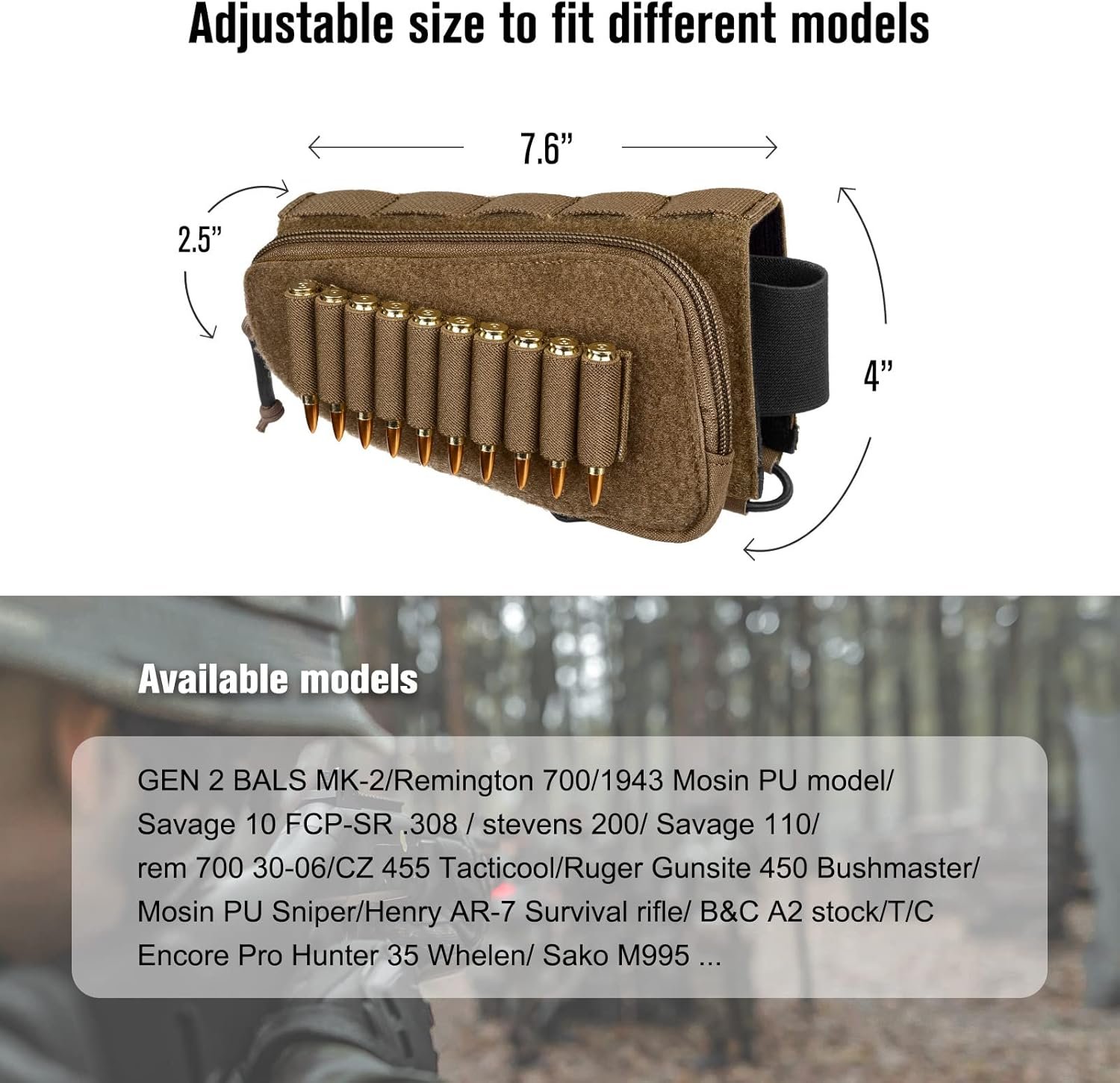 PETAC GEAR Tactical Buttstock Rifle Stock Pack/Adjustable Shell Holder Cheek Rest Pouch for Long Action …