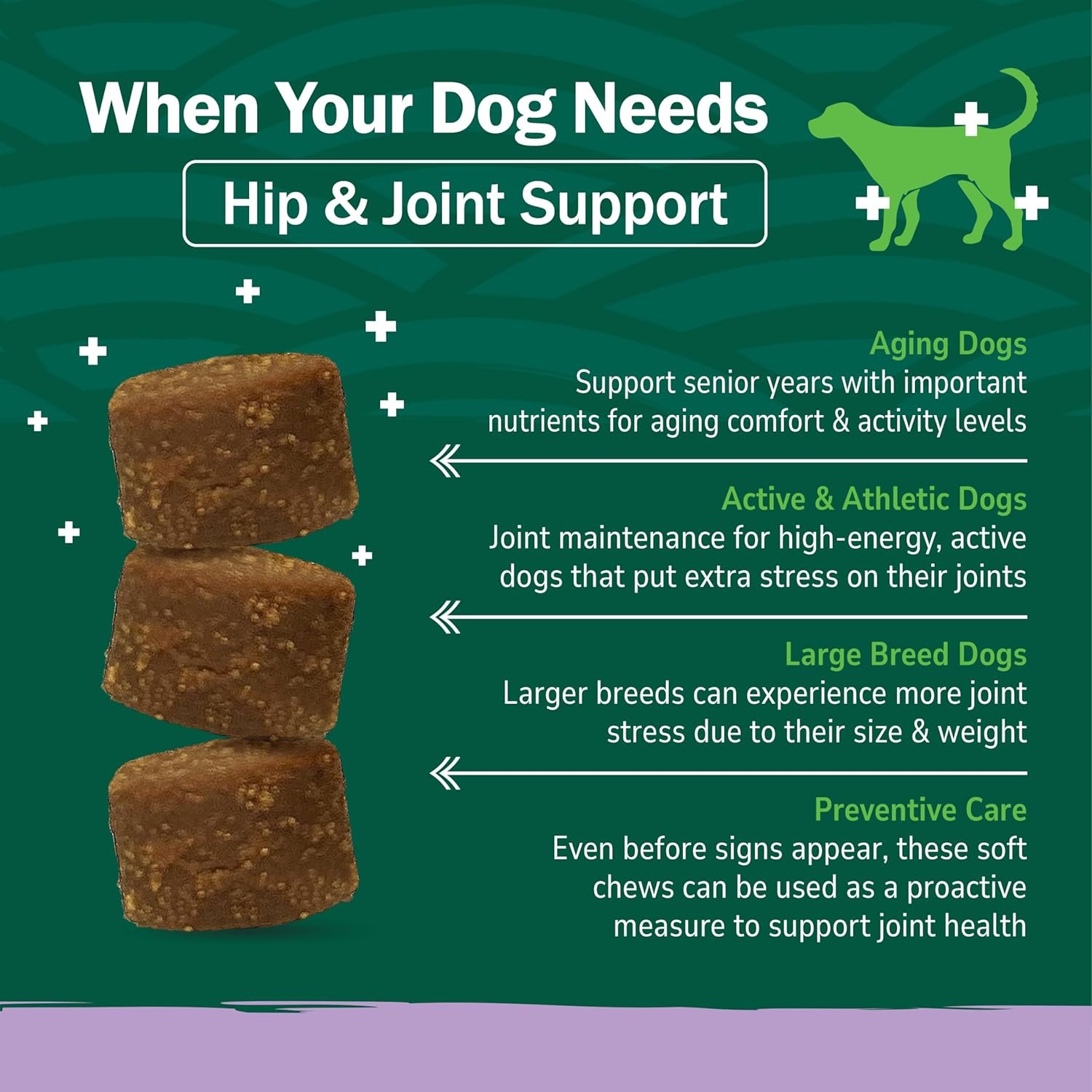 FORMULATED FOR ALL BREEDS & LIFE STAGES: Designed for puppies, adult dogs and seniors, these joint support supplement provide essential nutrients for dogs of all sizes and 18 weeks+, giving lifelong support to keep them running, jumping, and thriving