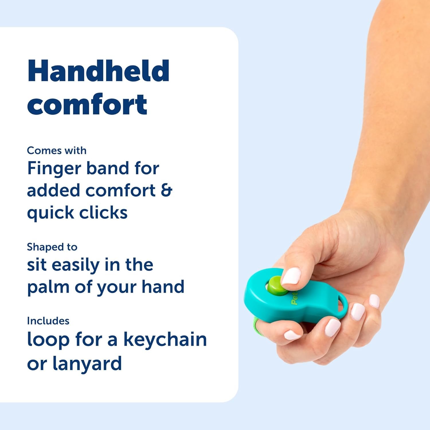 PetSafe Clik-R Training Tool – Positive Behavior Reinforcement – Ergonomic Design – Compact Finger Band – Daily Training Accessory – Clicker for Dogs & Cats – Teal