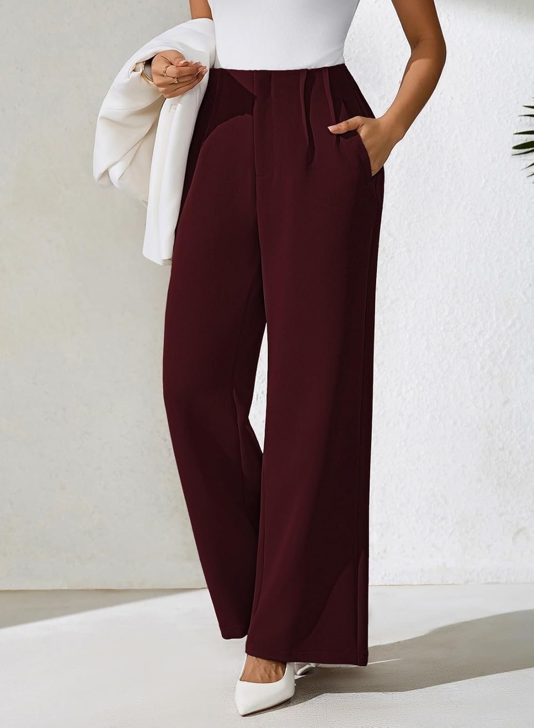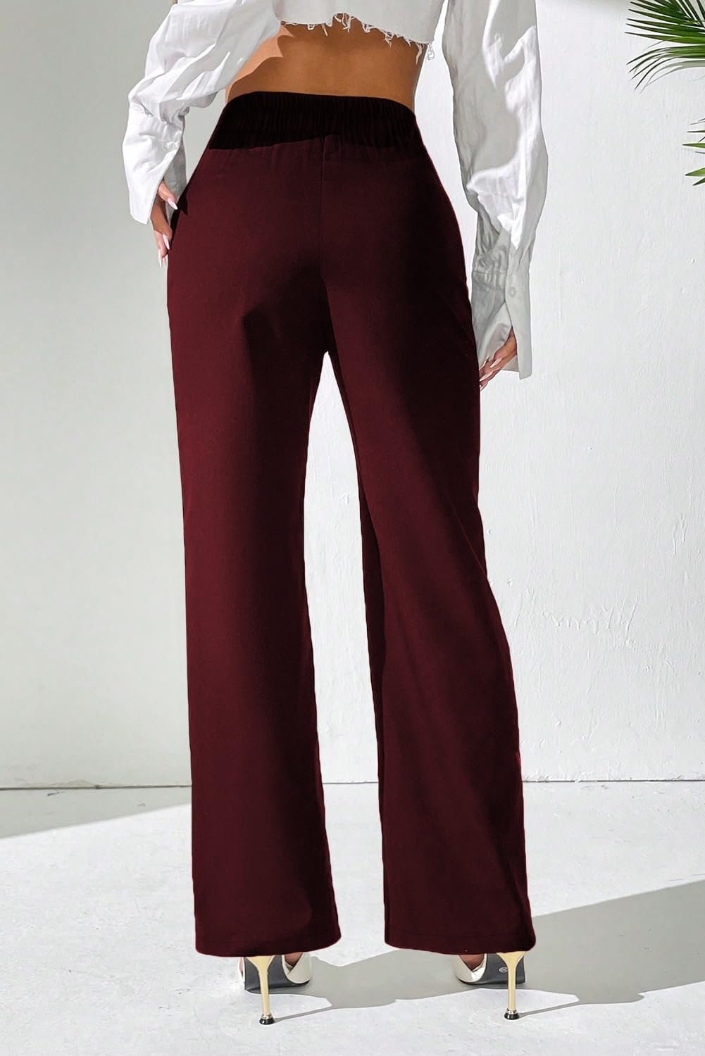 Pink Queen Women’s Dress Pants Elastic High Waist Straight Leg Office Slacks Pull On Business Casual Trousers Work Pants