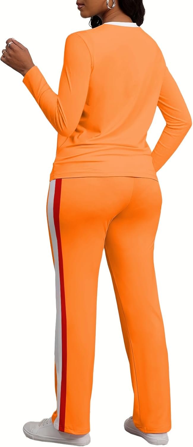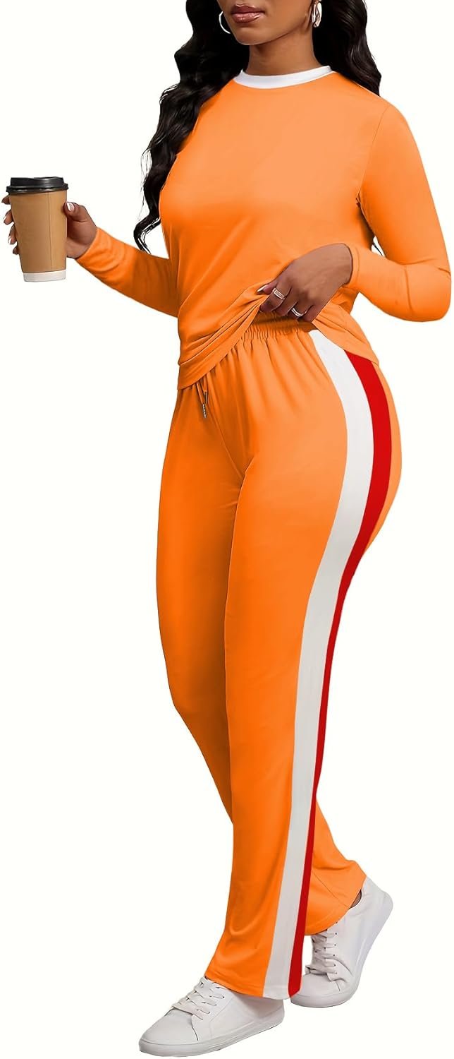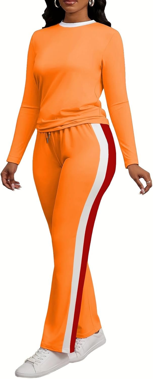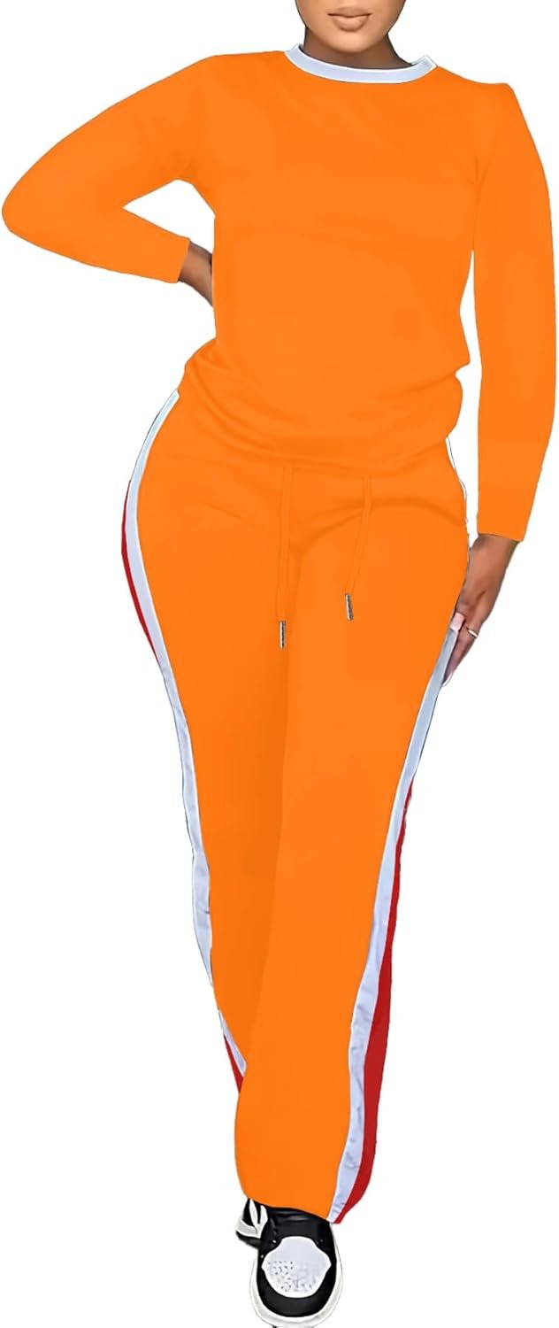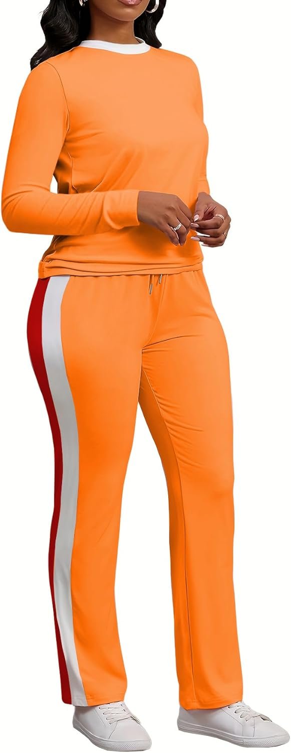 PINSV Women’s 2 Piece Outfits Long Sleeve Tops Sweatpants Colorblock Bodycon Lounge Sets Tracksuits