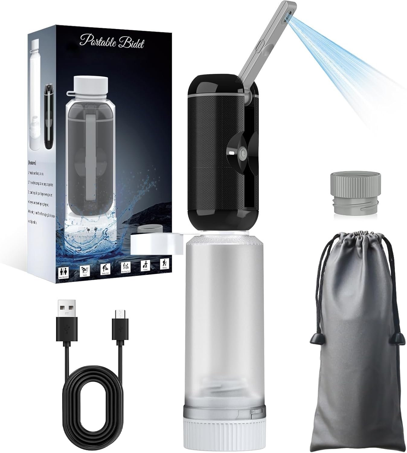 Portable Bidet for Travel,Rechargeable Travel Bidet Sprayer with Adaptor, Waterproof High Pressure Handheld Bidet for Women Men Personal Hygiene,Black