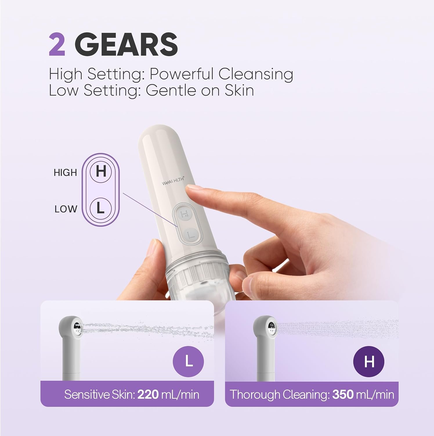 【Easy to Use and Thorough Clean】: Two-speed button, “L” is gentle, “H”is strong.meet your different demands. Press the button gently to achieve the cleaning effect.Semi-circular spout for accurate alignment of cleaning point, achieve more accurately and thoroughly cleaning, while doing no damage the skin.