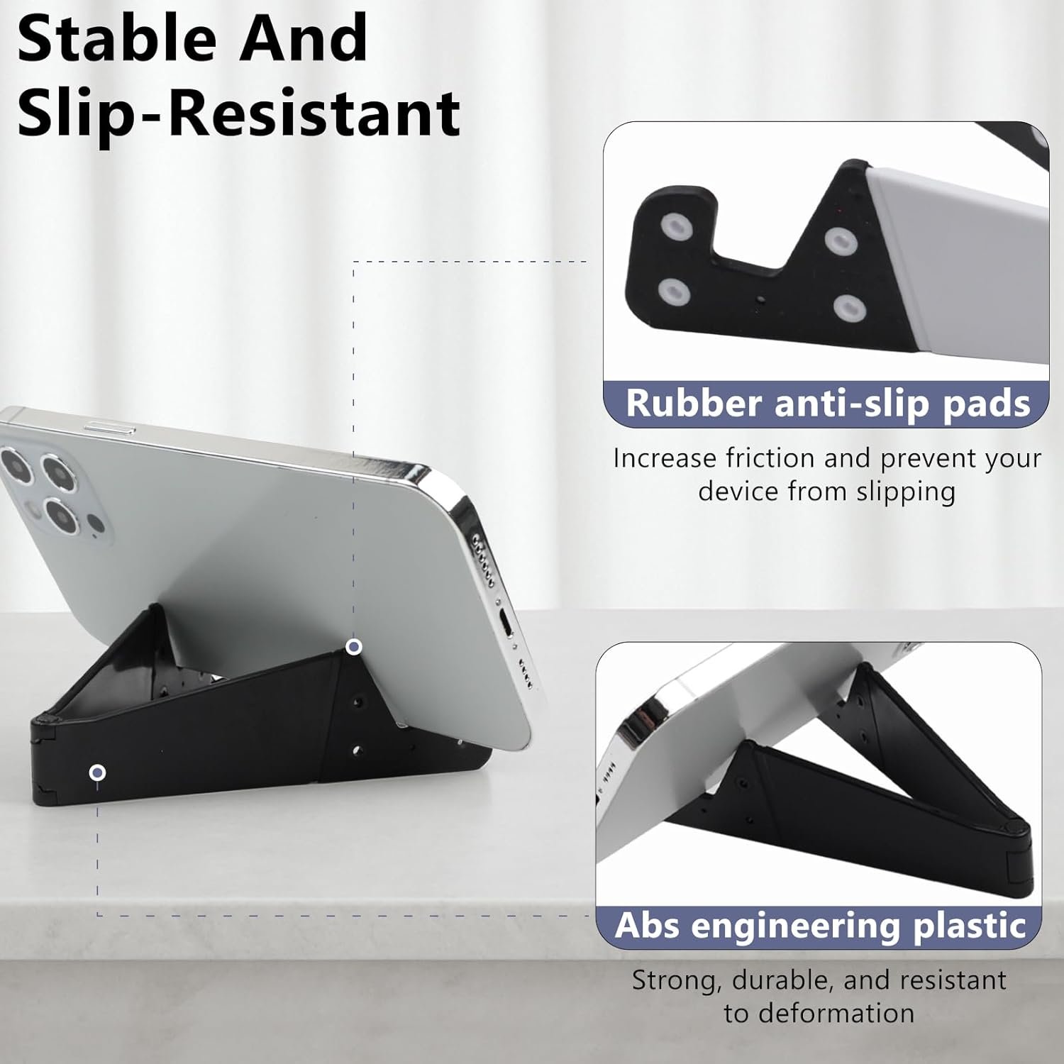 Portable Mobile Phone Stand for Desk, Foldable Pocket Travel Holder, Universal V Smartphone Kickstand Mount Compatible with iPhone, iPads, Kindle, Android, Pack of 4