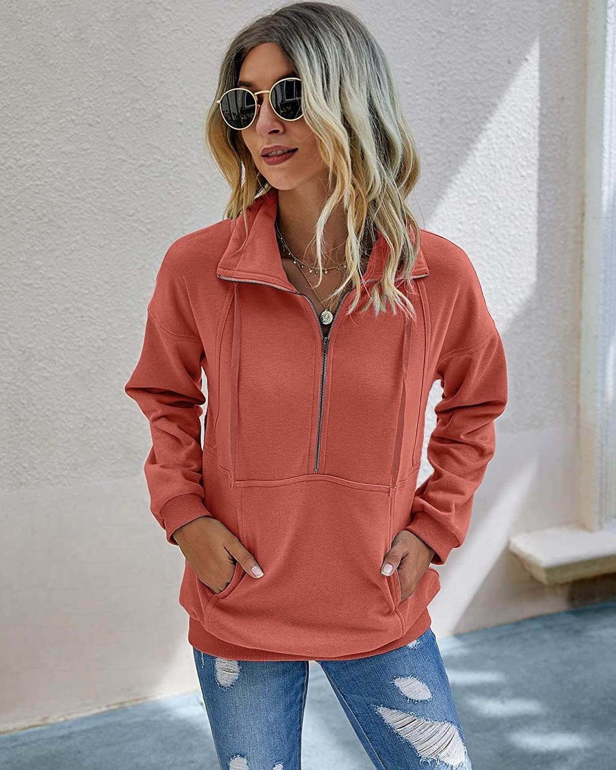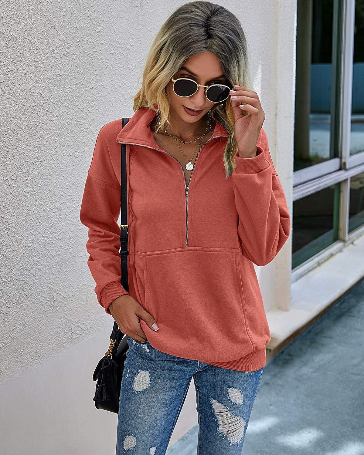PRETTYGARDEN Women’s Casual Long Sleeve Lapel Zipper Sweatshirt Drawstring Loose Pullover Tops