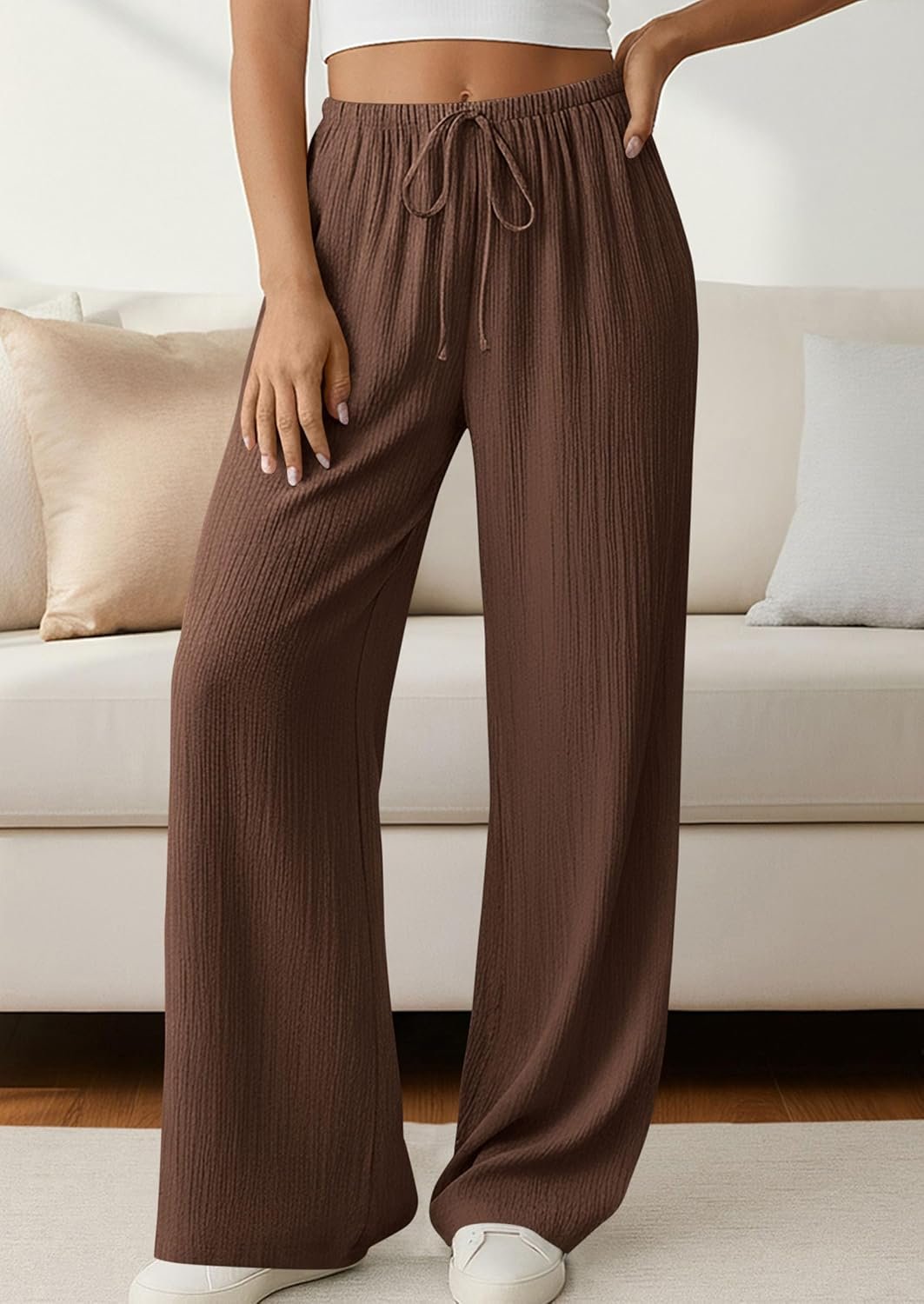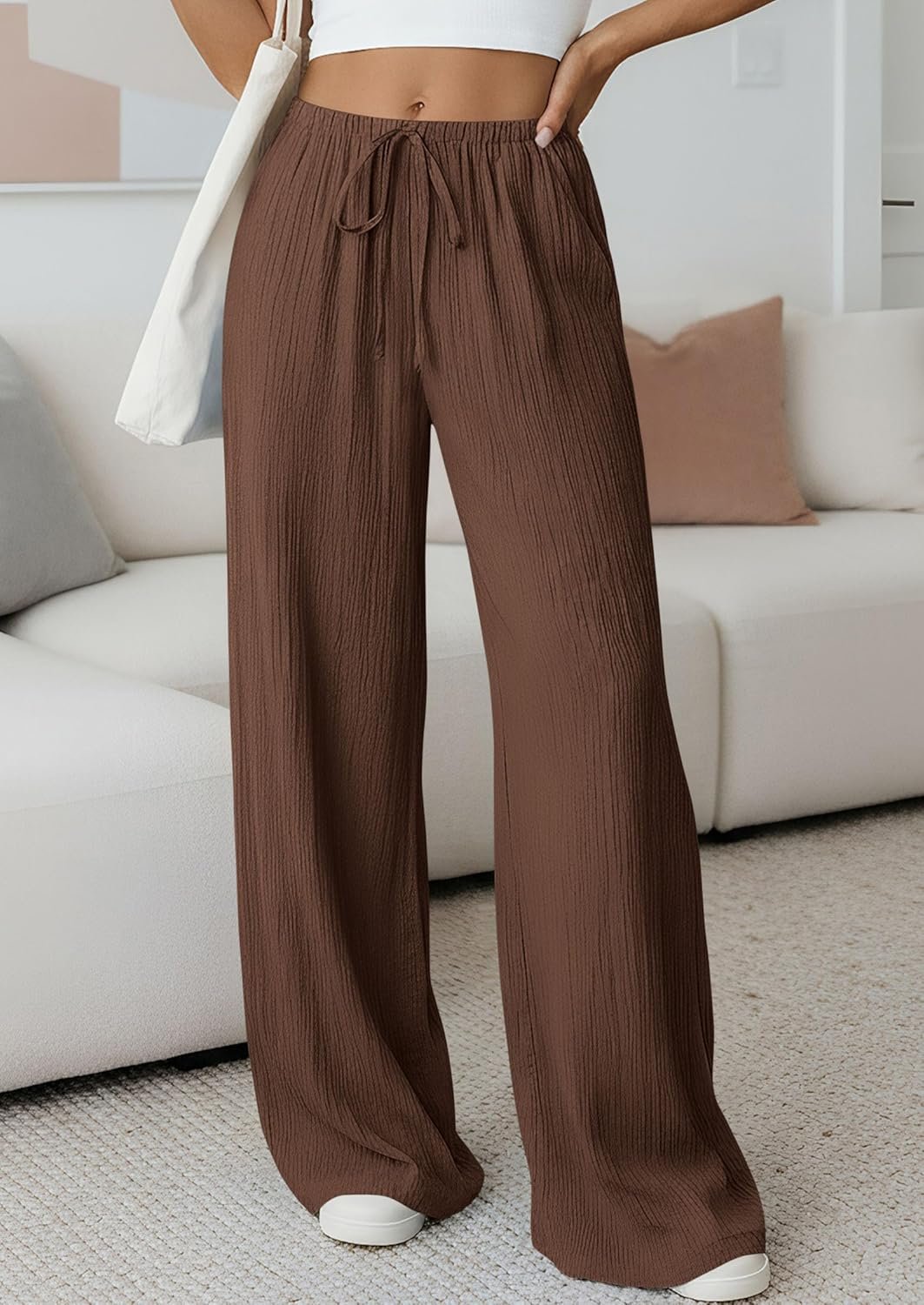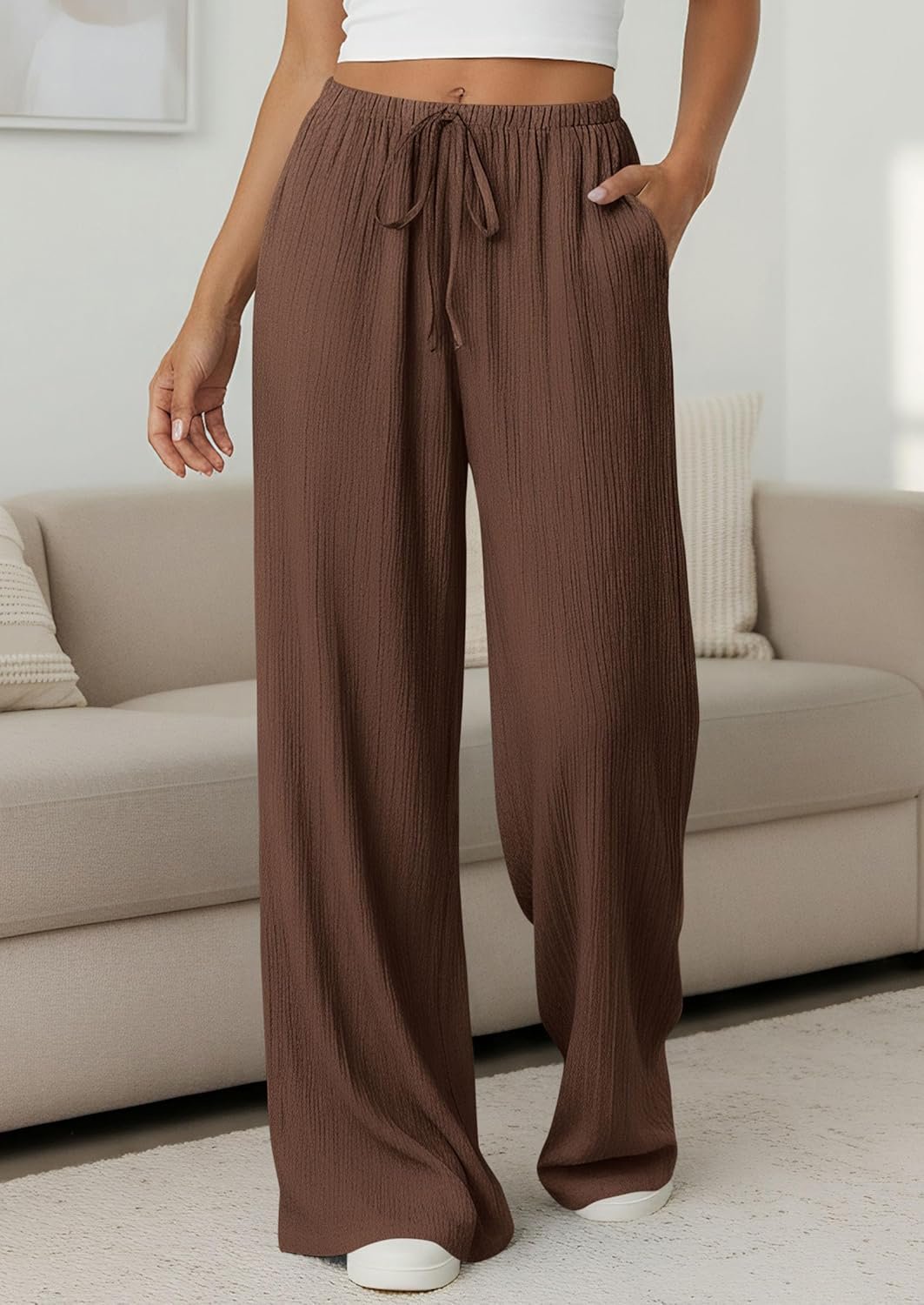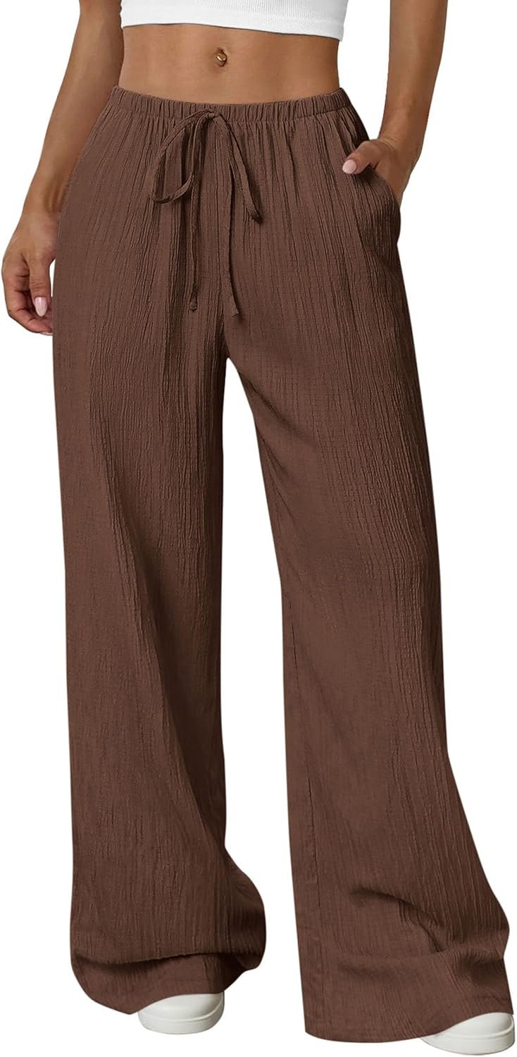 PRETTYGARDEN Womens Palazzo Pants Summer Fashion 2026 High Waisted Wide Leg Drawstring Flowy Beach Trousers with Pockets