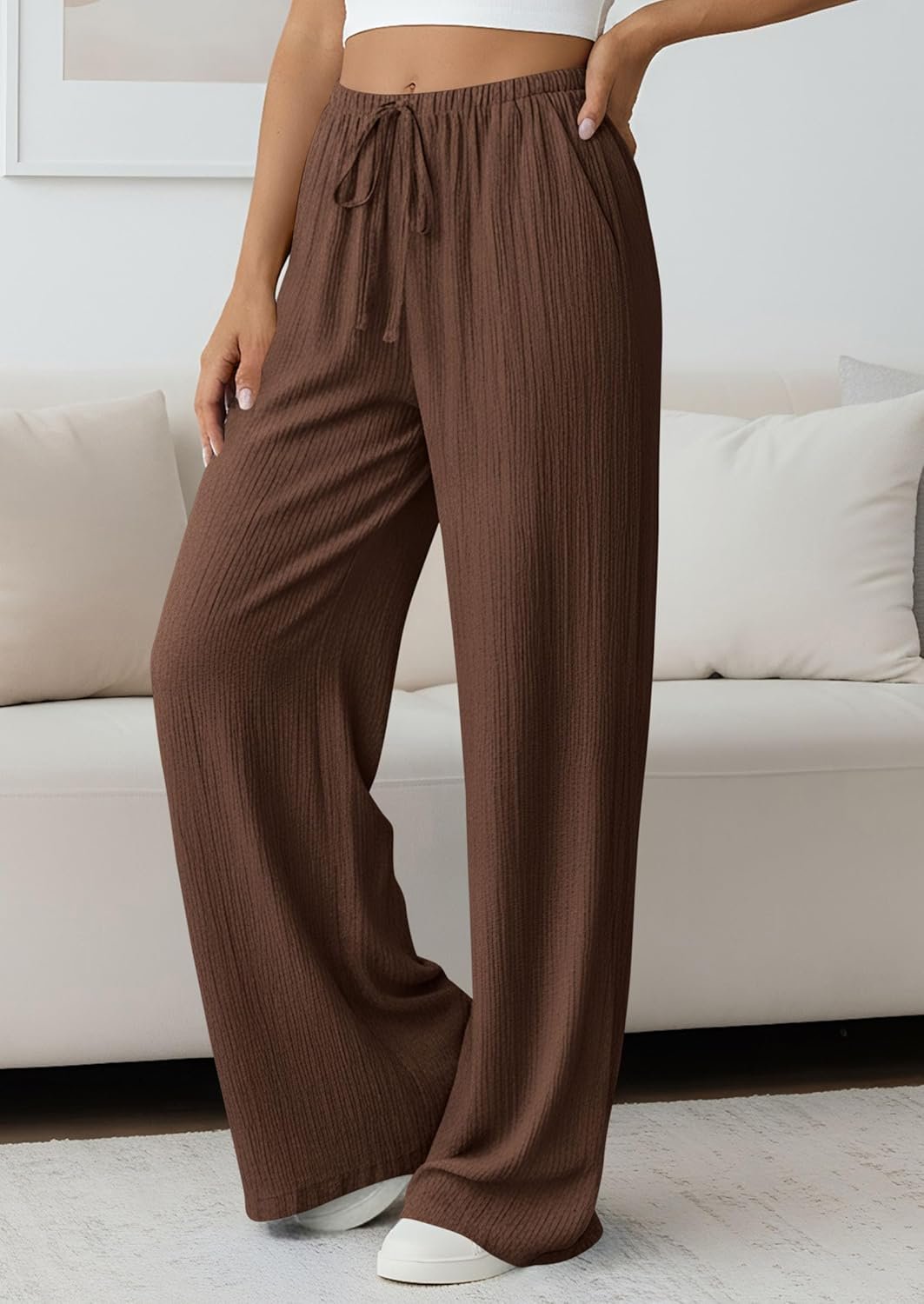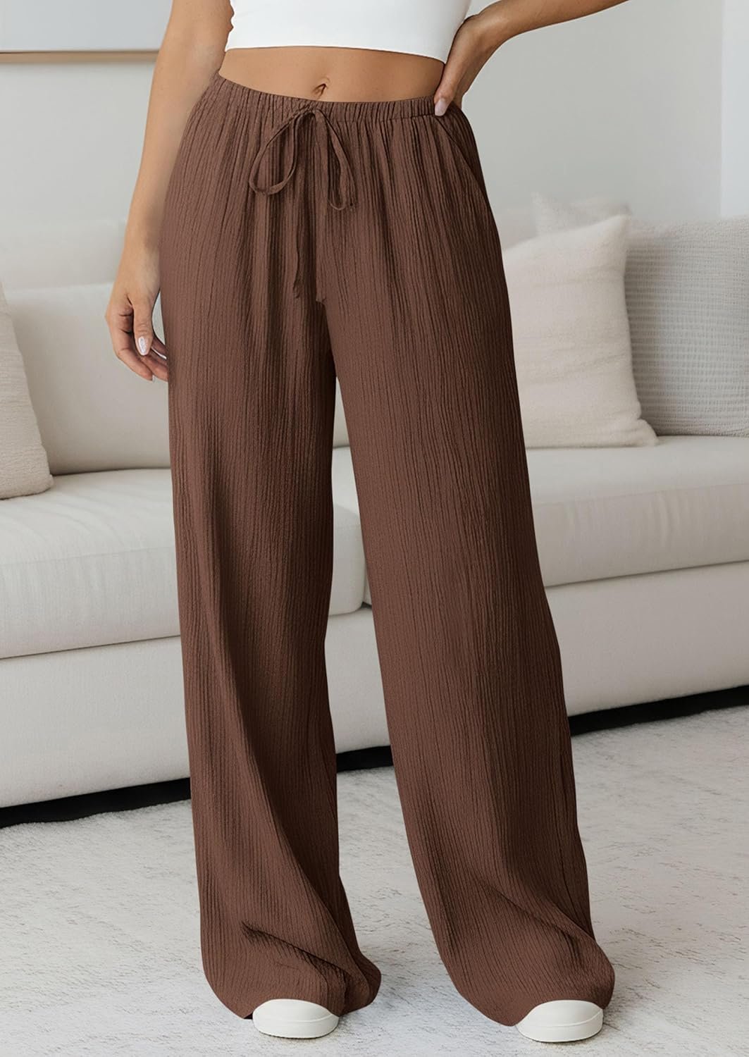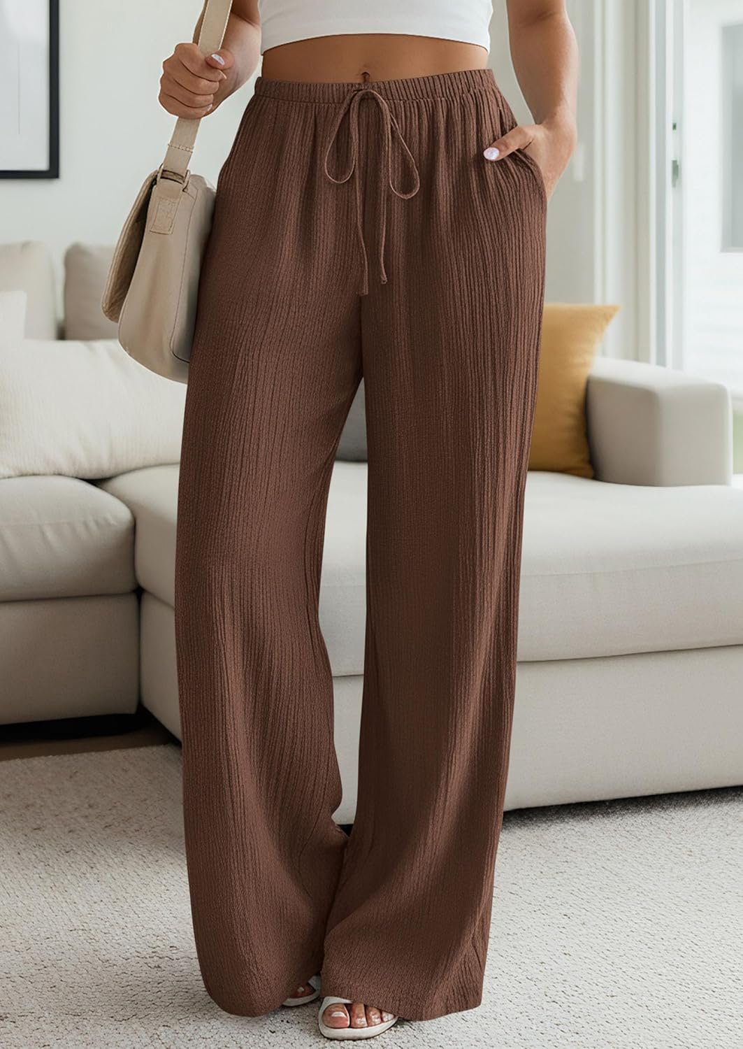 PRETTYGARDEN Womens Palazzo Pants Summer Fashion 2026 High Waisted Wide Leg Drawstring Flowy Beach Trousers with Pockets