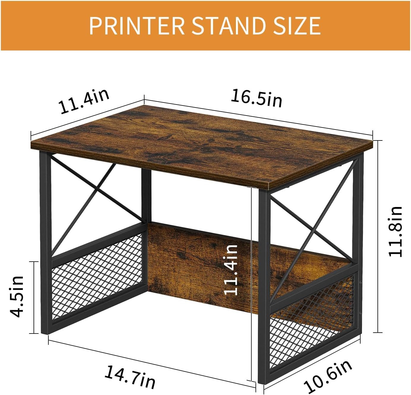 Ideal Size:With dimensions of 16.5 x 11.4 x 11.8 inches, Space-saving tiered design of this printer stand for desk enhances storage capacity, freeing up valuable desk space, elevating printers, fax machines, scanner on the top shelf while keeping your files, paper, documents or other printing supplies at the bottom, maximize your work area.