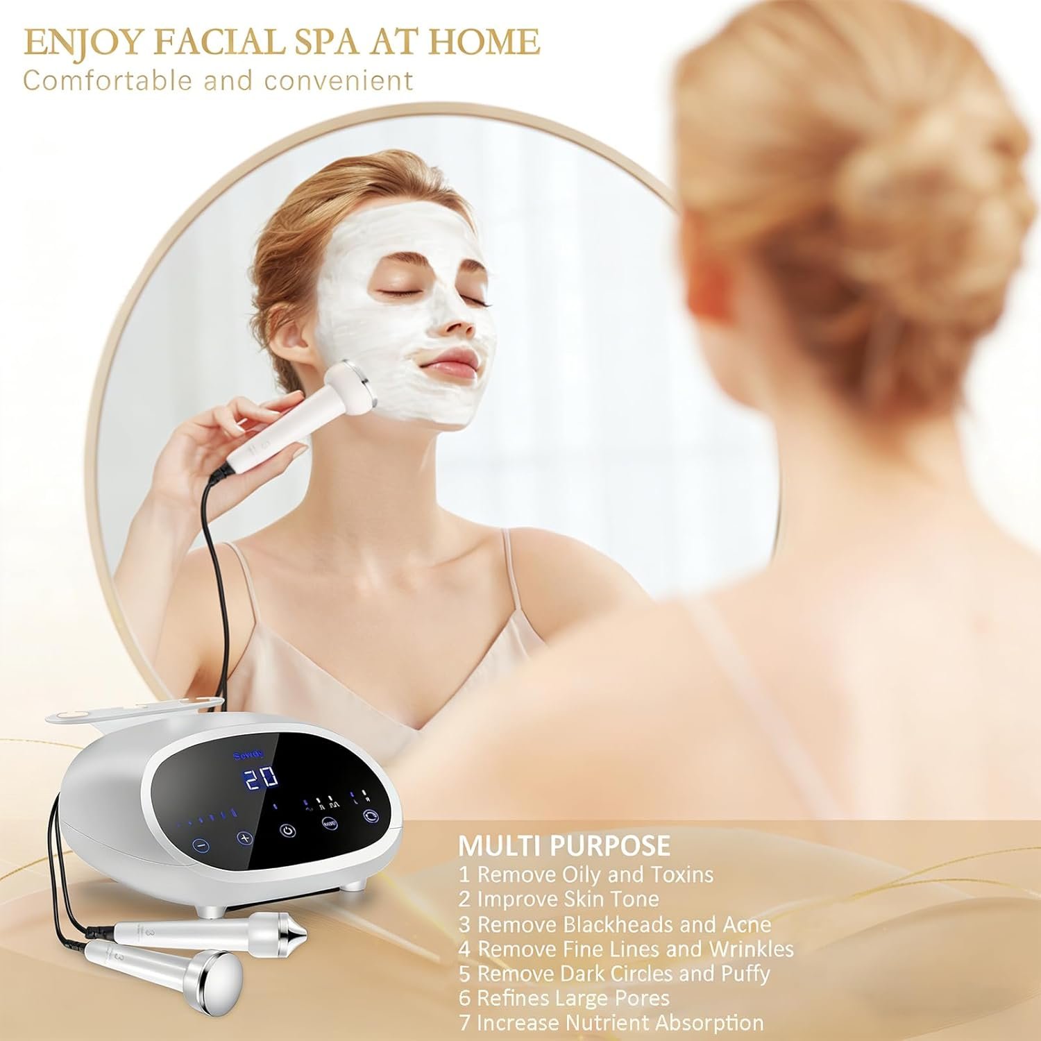 【Visibly Tighten & Defy Aging】 Restore your skin’s youthful bounce by targeting sagging and loss of elasticity. This comprehensive device diminishes fine lines and wrinkles, smoothing the complexion while enhancing overall skin tone and radiance for a healthy, salon-quality glow.