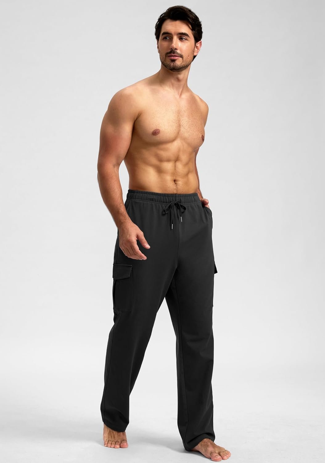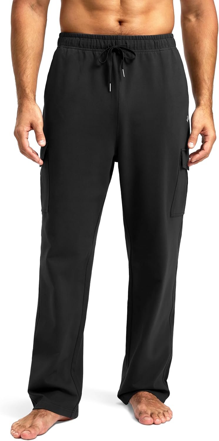 Pudolla Men’s Cotton Sweatpants with Cargo Pockets Open Bottom Yoga Pants for Men Lounge Pants for Athletic Workout Casual