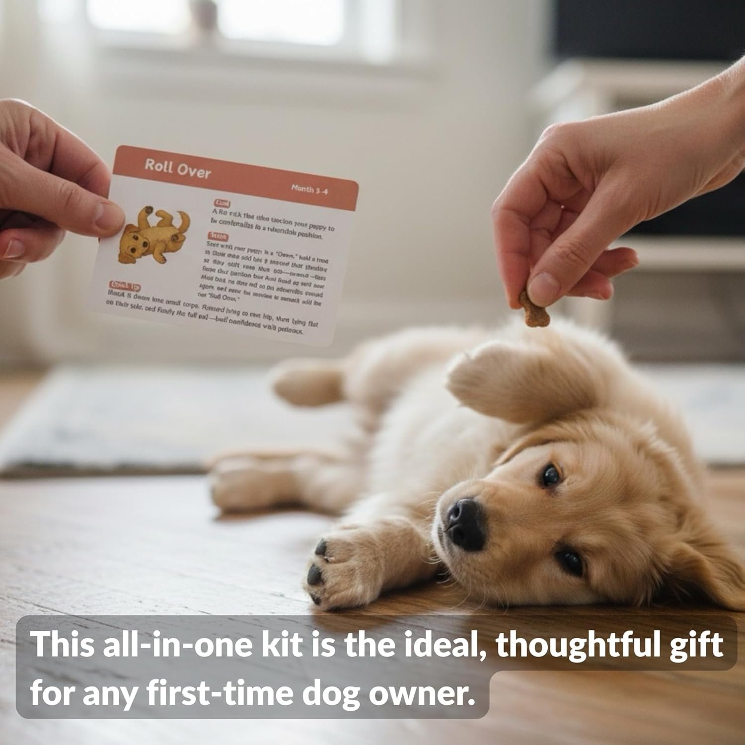 Stop the overwhelming search! Replace dense dog training books and journals with this complete, stage by stage card system. This kit is designed for real life, guiding you and your new puppy from 8 weeks to 2 years. You get 50 durable, water-resistant laminated cards that act as your all-in-one puppy checklist, journal, and guide. Master everything from Housetraining and Crate Training to Leash Pulling and advanced dog tricks. INCLUDES A BONUS TRAINING CLICKER! This portable, easy-to-use kit is the perfect, thoughtful gift for any new puppy owner or breeder go-home kit. Start your stress-free journey to a happy, well-behaved companion today.
