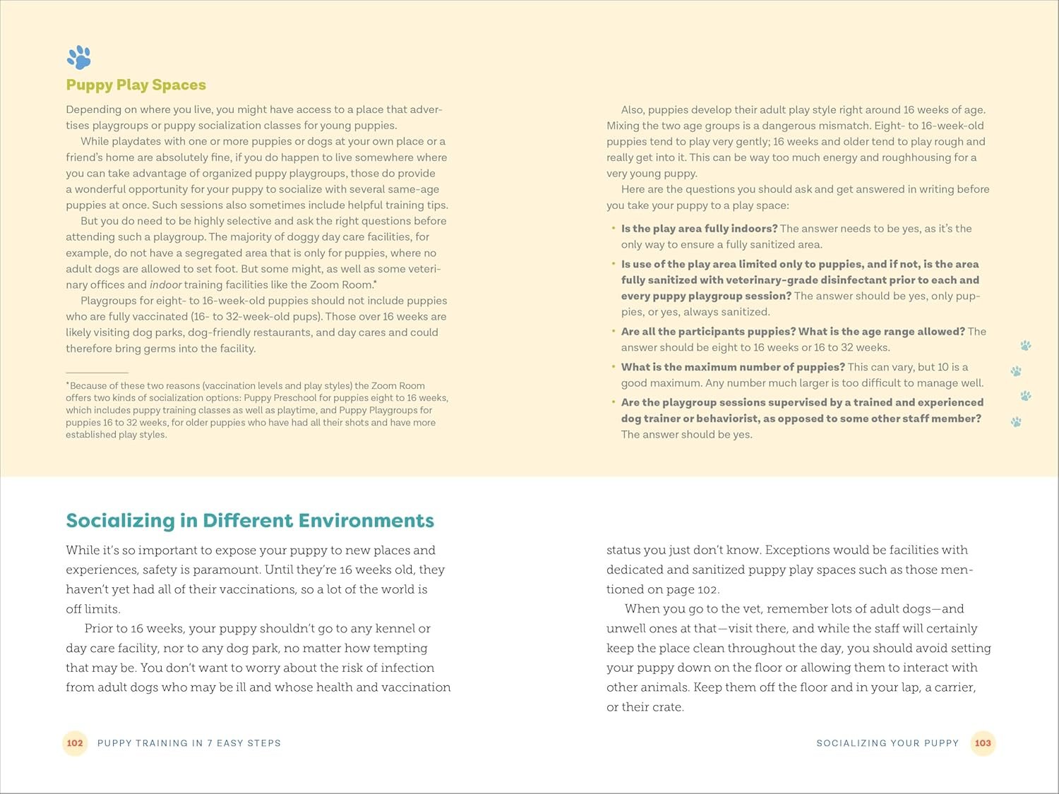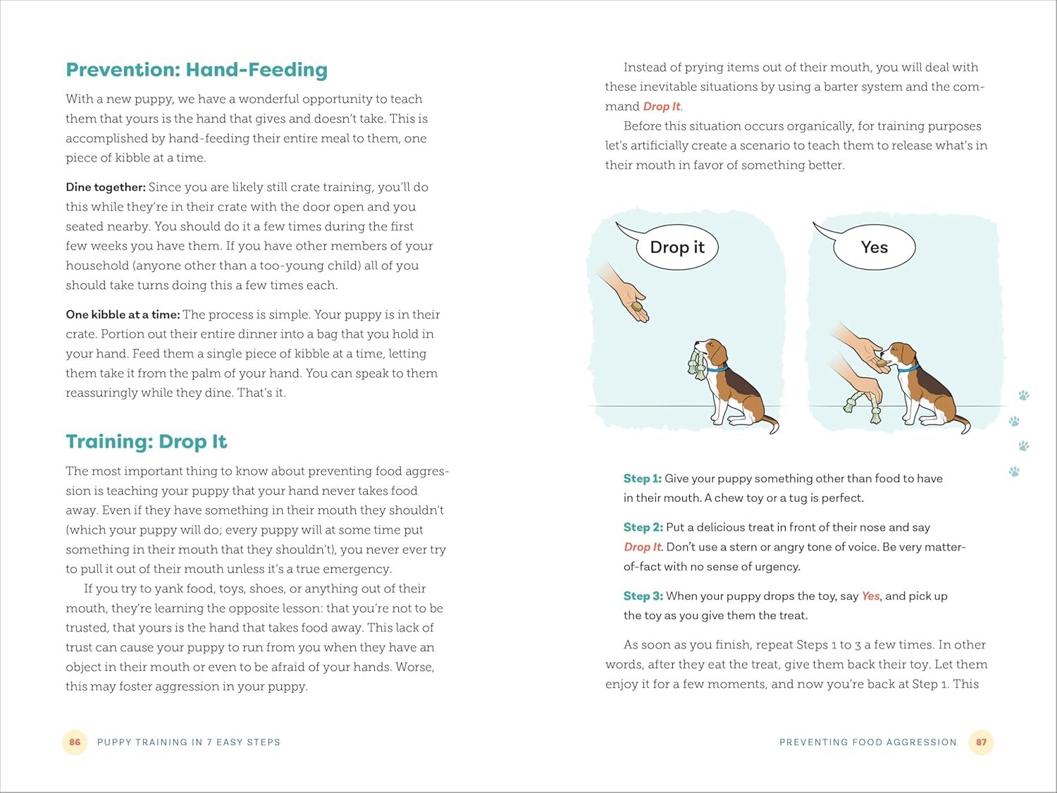 Complete dog training―Get guidance for bringing your puppy home, crate and potty training, preventing food aggression, socializing, learning key commands, and leash walking.Prep and puppy-proofing―Explore the best ways to prepare for getting a puppy, from checking off an essential list of supplies to doing a safety check around your home.Tips and troubleshooting―Learn how to see each dog training step from your puppy’s viewpoint and get quick advice in case things don’t go according to plan.