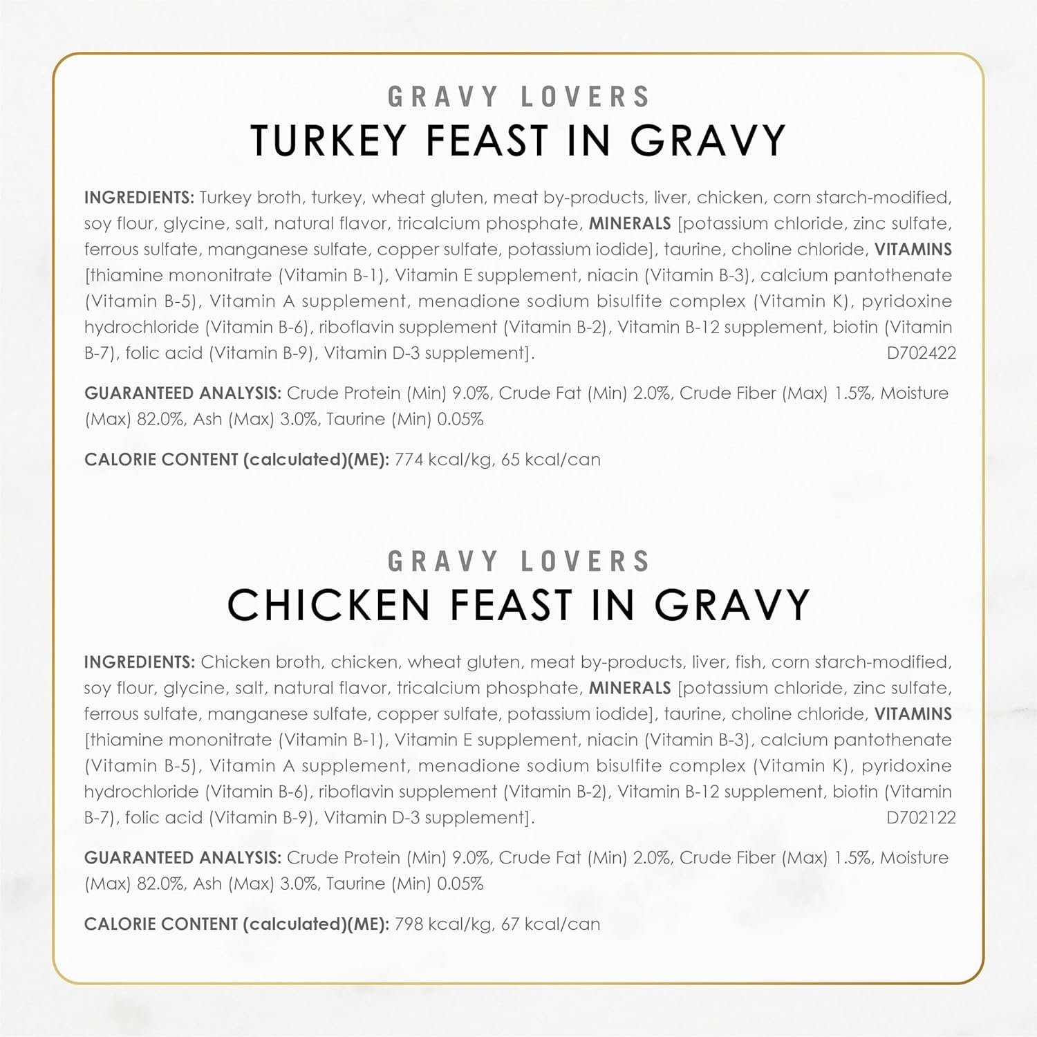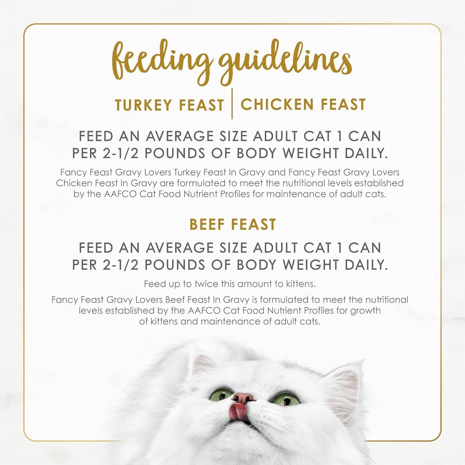 An irresistible, protein-rich Fancy Feast Gravy Lovers cat food taste offering a gourmet turkey, chicken or beef cat food meal with an enticing aroma and a light, savory gravy
