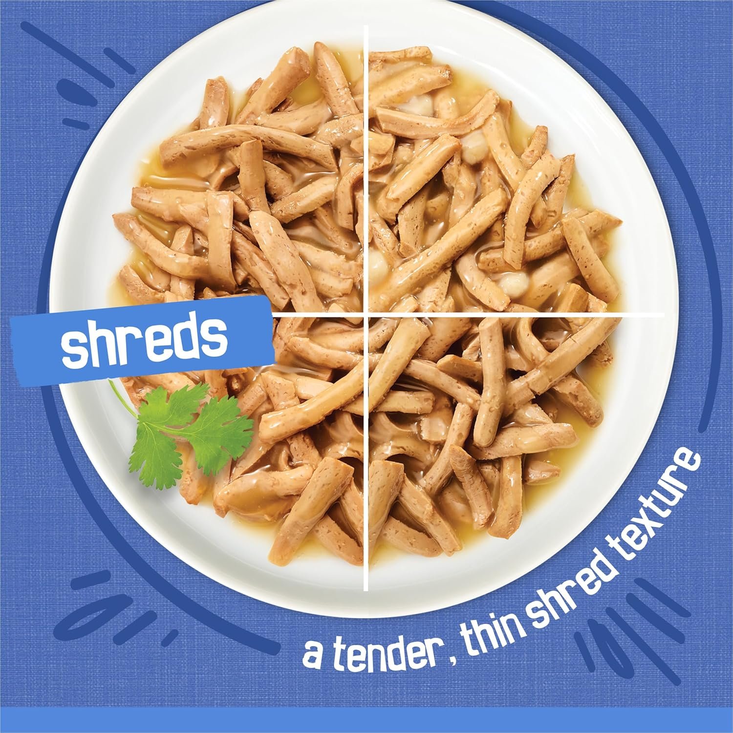 Purina Friskies gravy wet cat food variety pack made with real beef, seafood or poultry. Thinly shredded pieces for a tempting texture