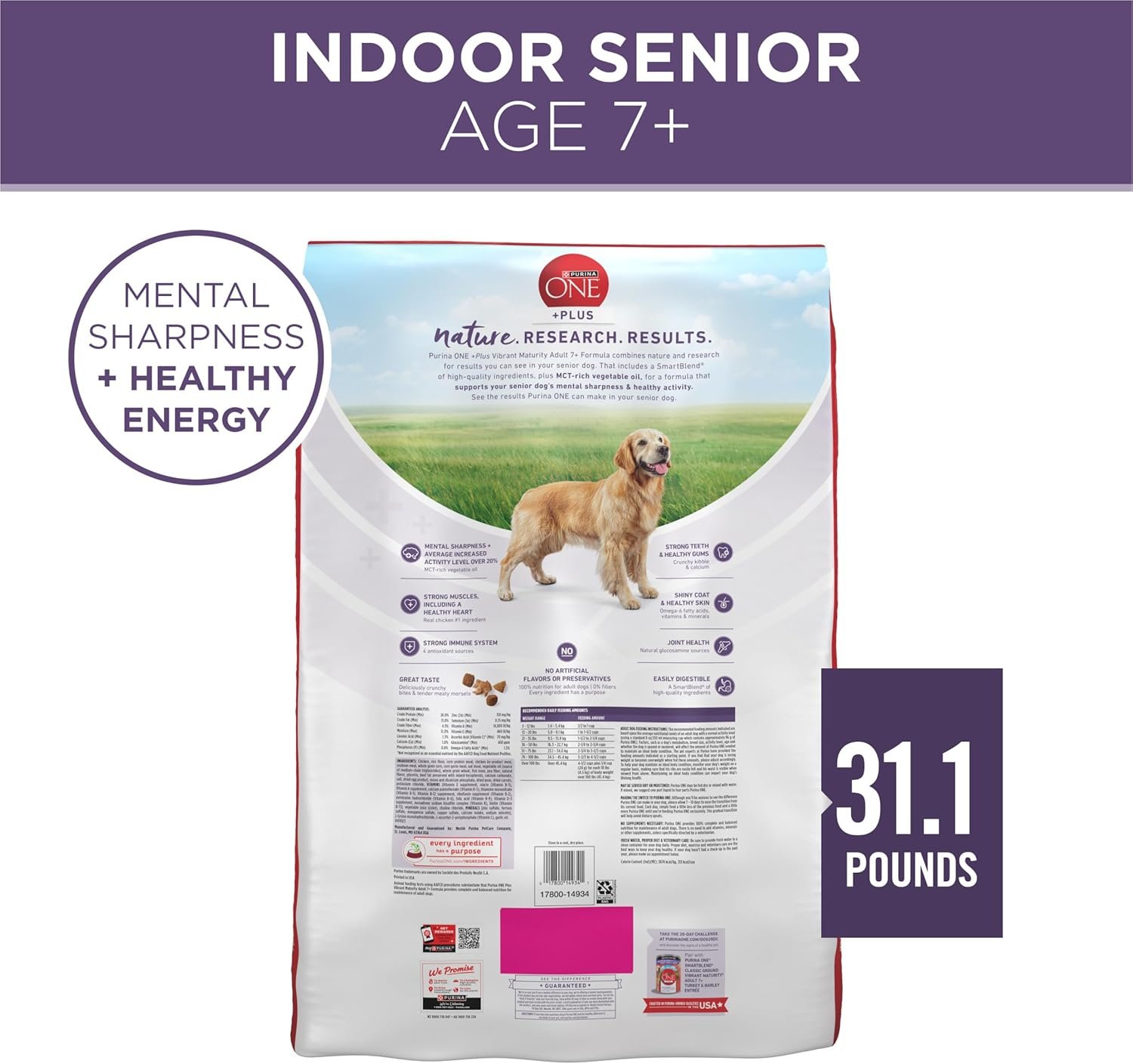 Purina ONE High Protein Dry Senior Dog Food Plus Vibrant Maturity Adult 7 Plus Formula – 31.1 lb. Bag