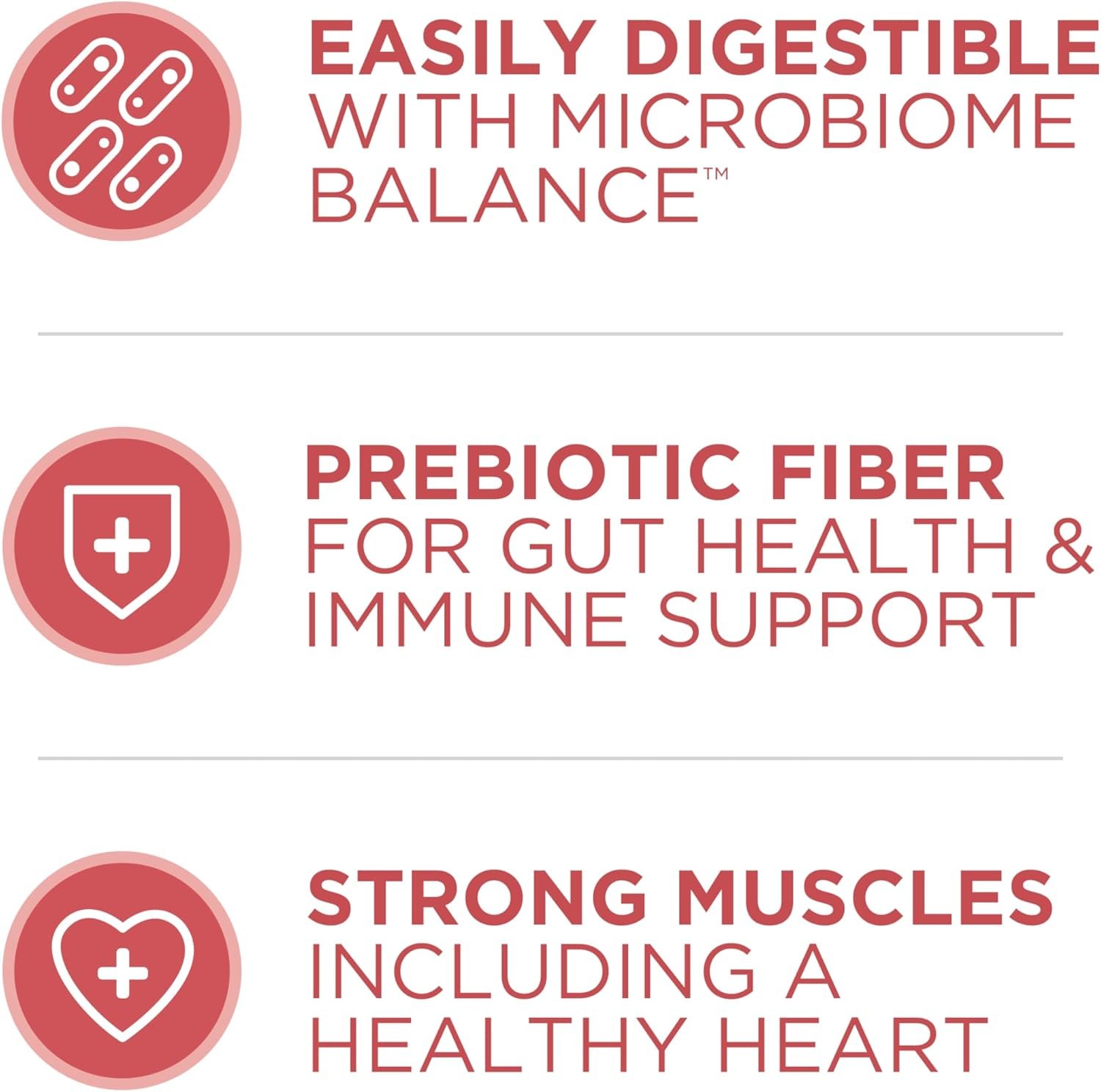 Natural prebiotic cat fiber supports a microbiome balance and is easy to digest, four antioxidant sources support her strong immune system, and omega-6 fatty acids nourish healthy skin and shiny coat