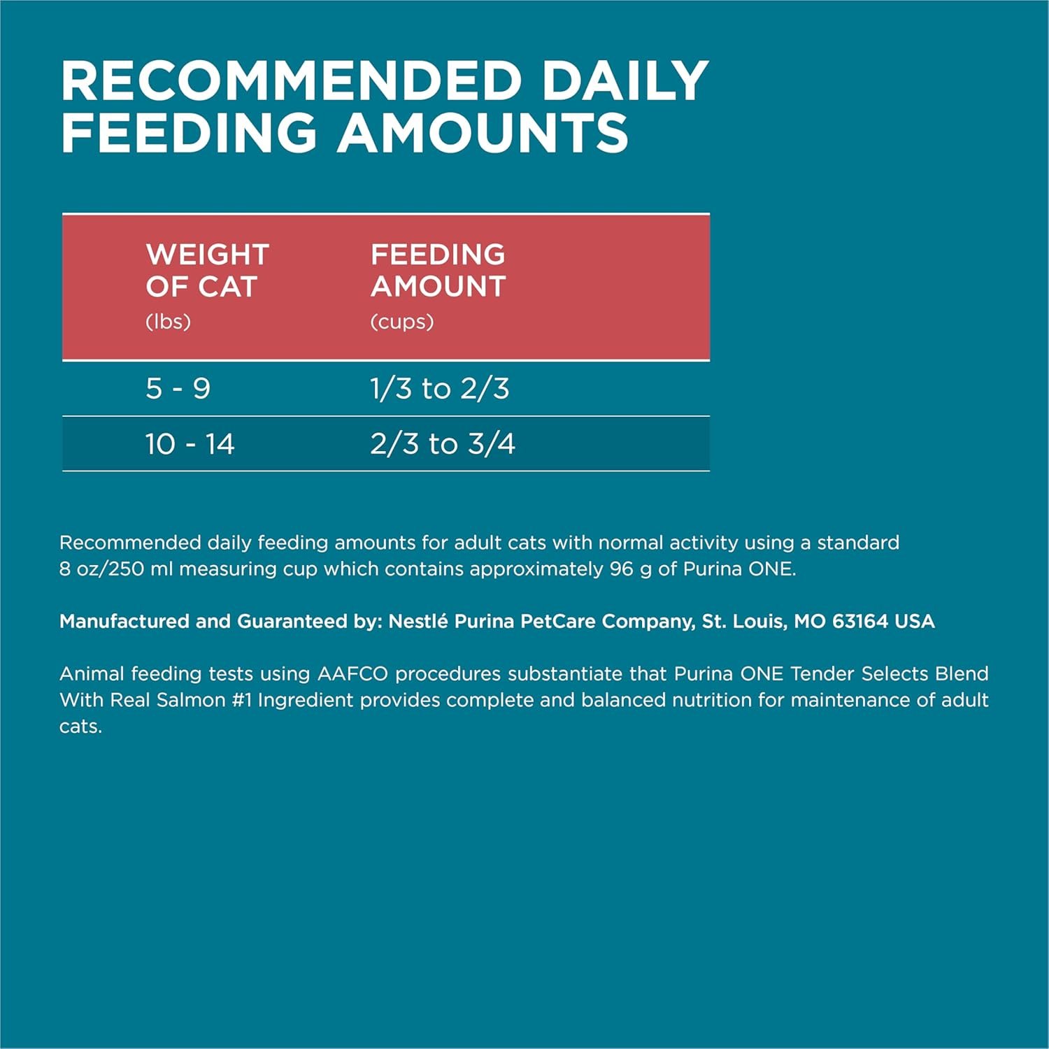 High levels of protein in Purina ONE Tender Selects Blend adult dry cat food with salmon help support your cat’s strong muscles, including her healthy heart, throughout her active life